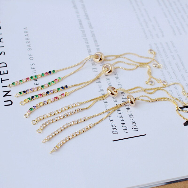 Универсальная длинная цепочка с цирконом, браслет из бисера, 14 карат, золотой цвет, DIY