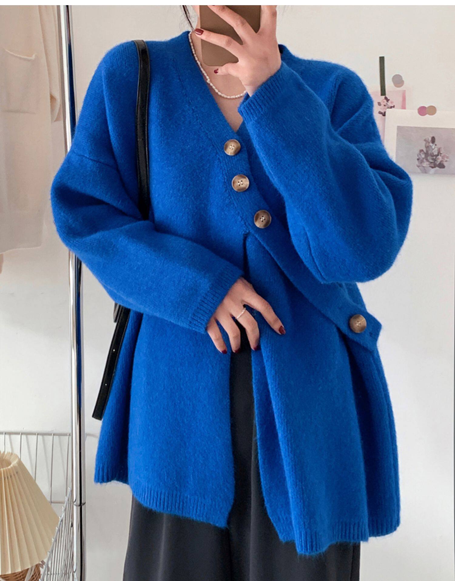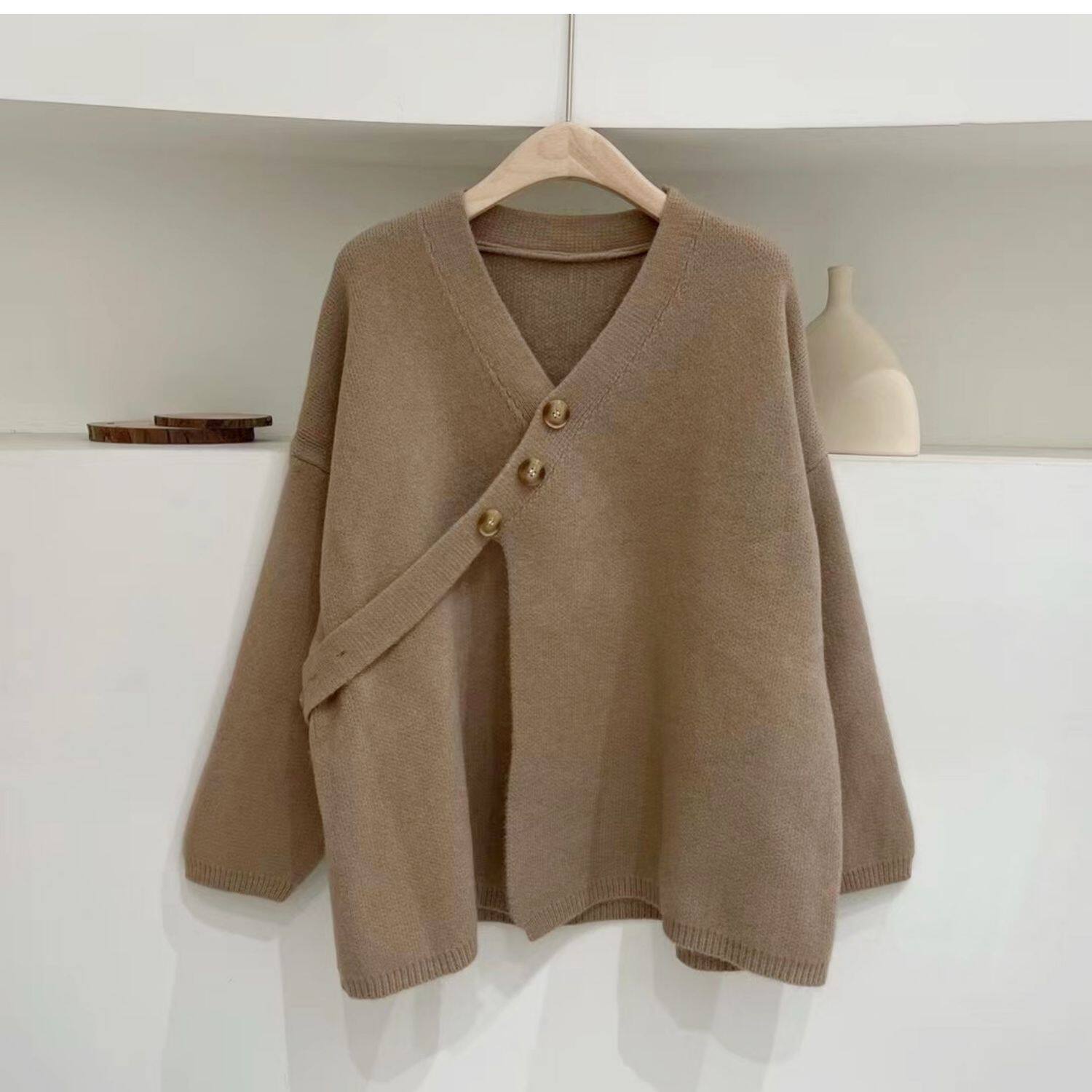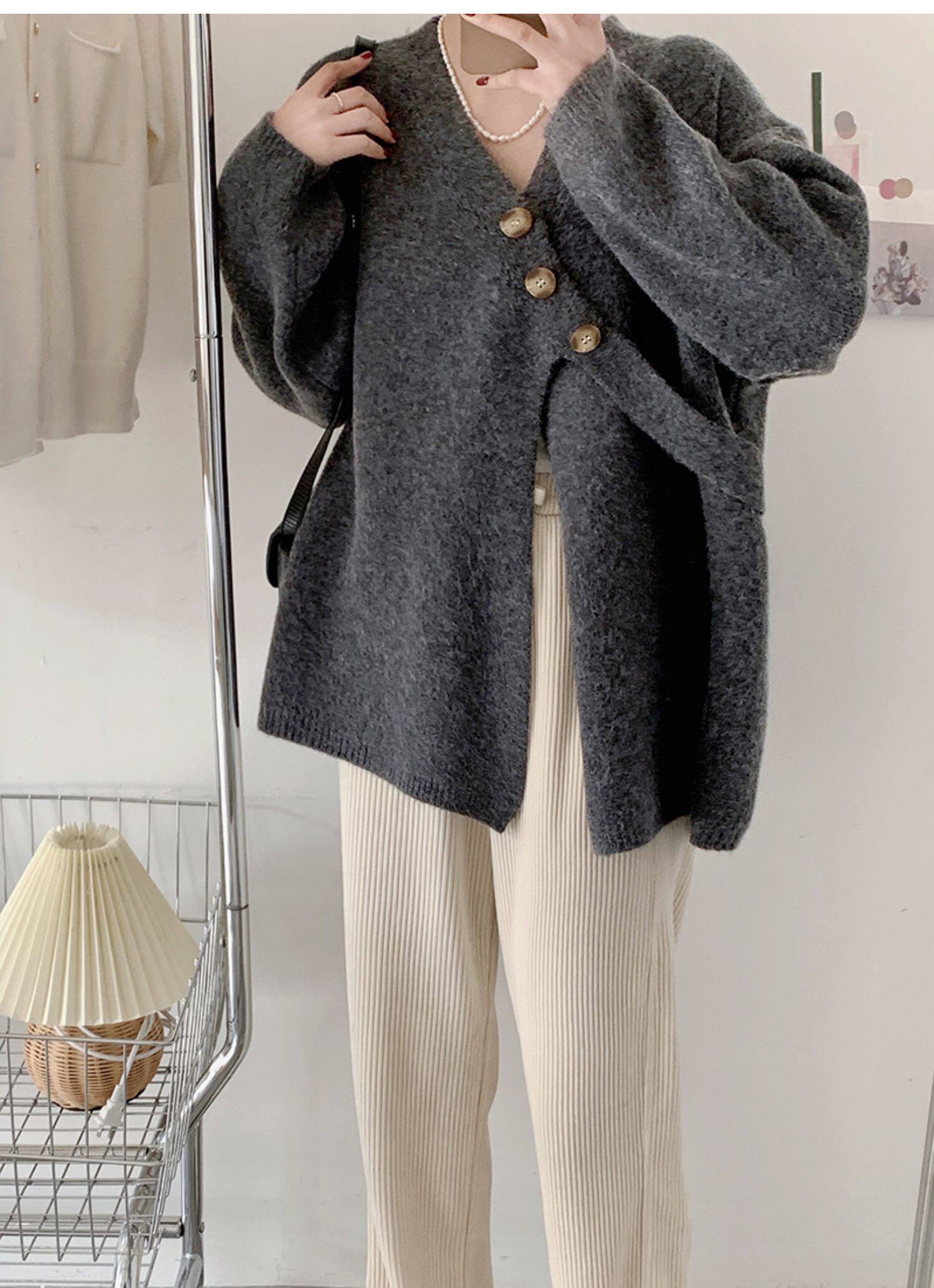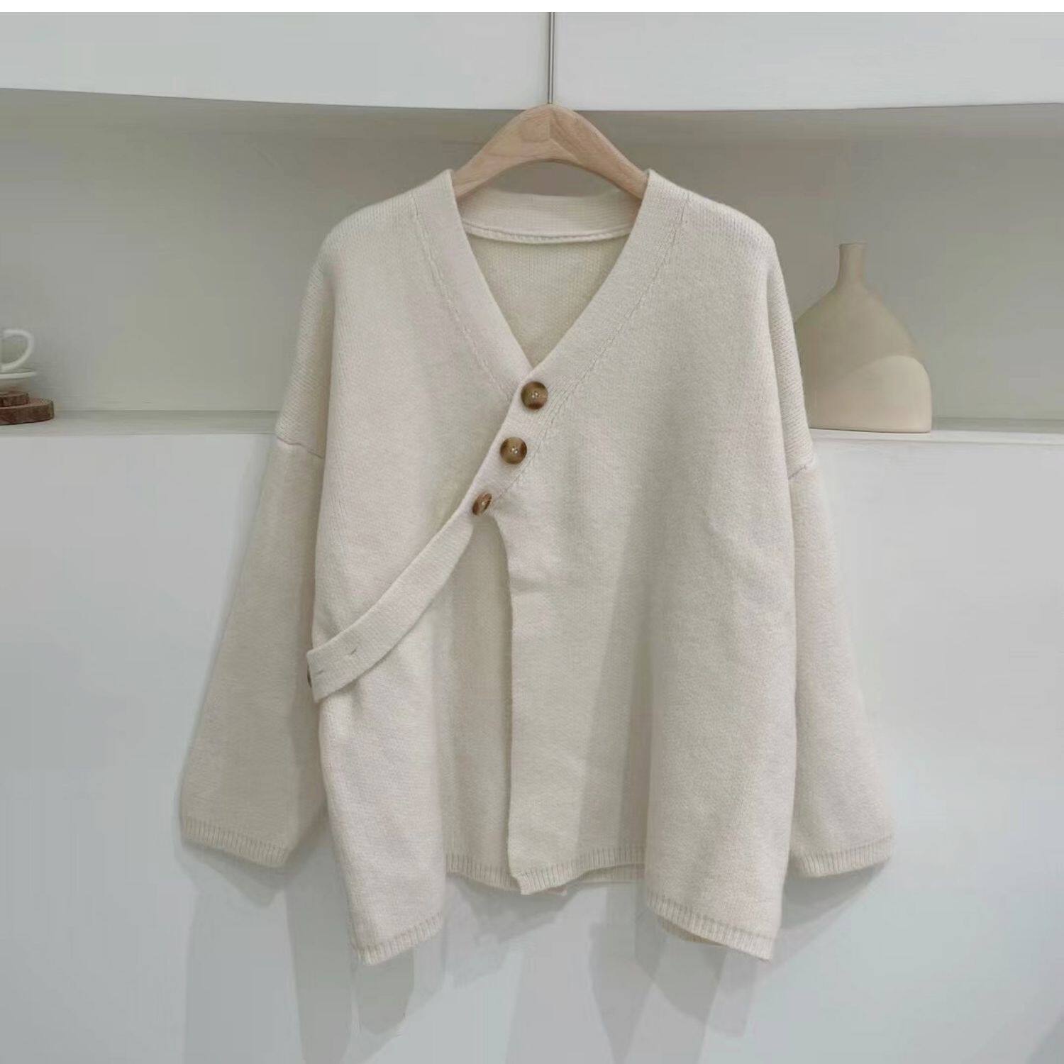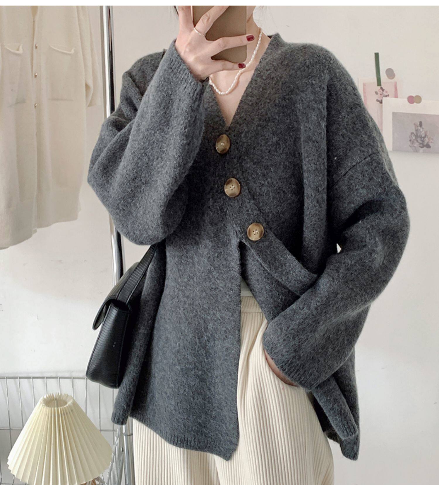 Свитер, небольшая дизайнерская куртка, лонгслив, кардиган, в корейском стиле, тренд сезона, оверсайз, увеличенная толщина