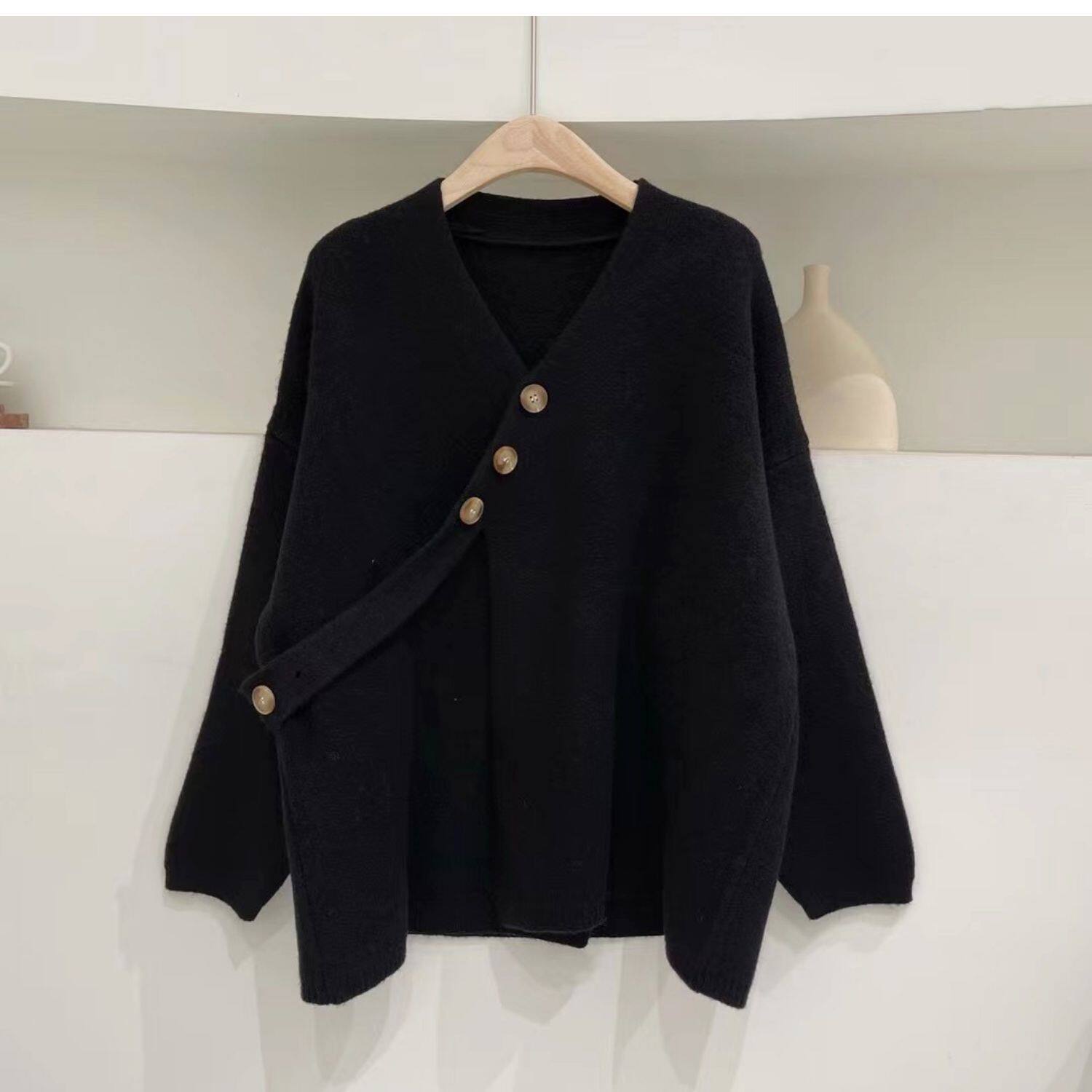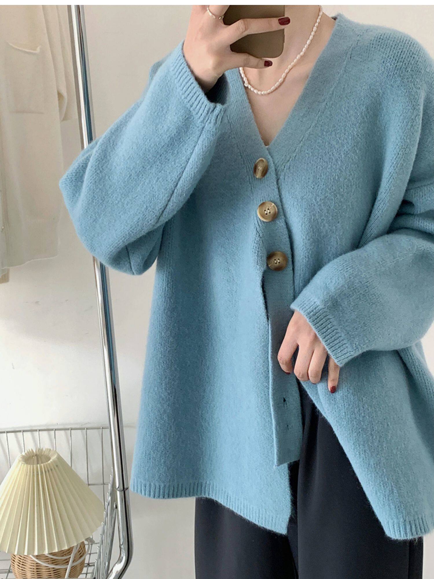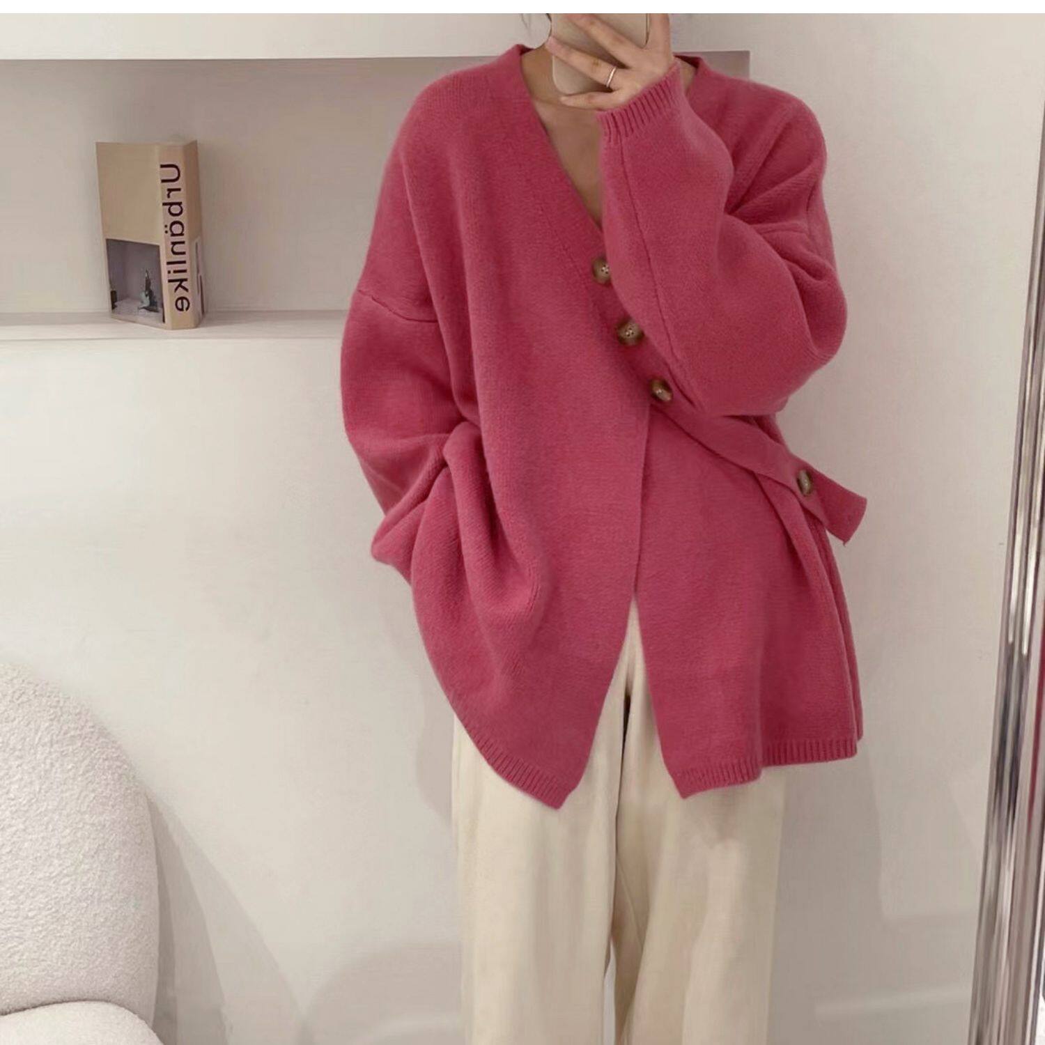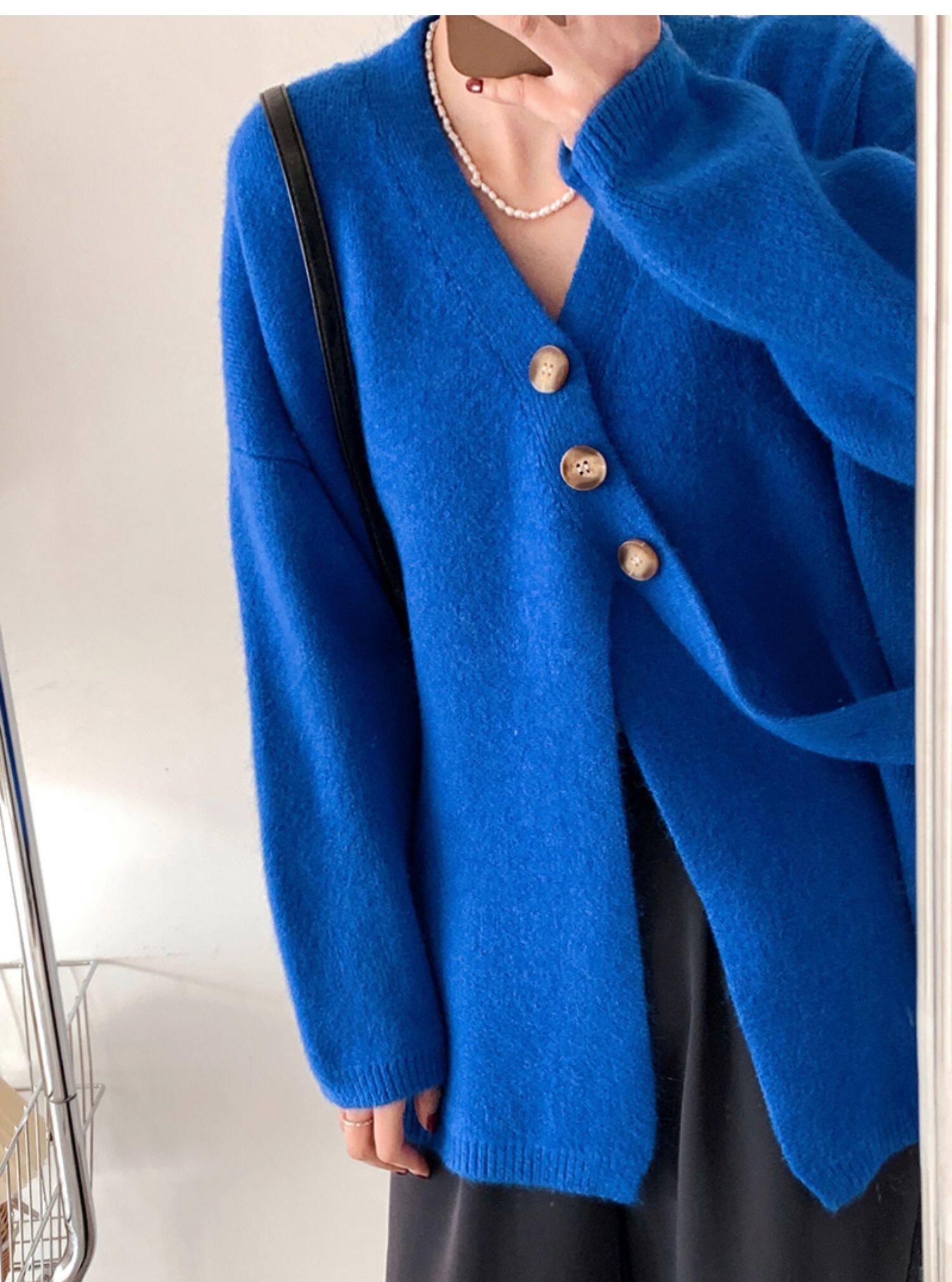 Свитер, небольшая дизайнерская куртка, лонгслив, кардиган, в корейском стиле, тренд сезона, оверсайз, увеличенная толщина
