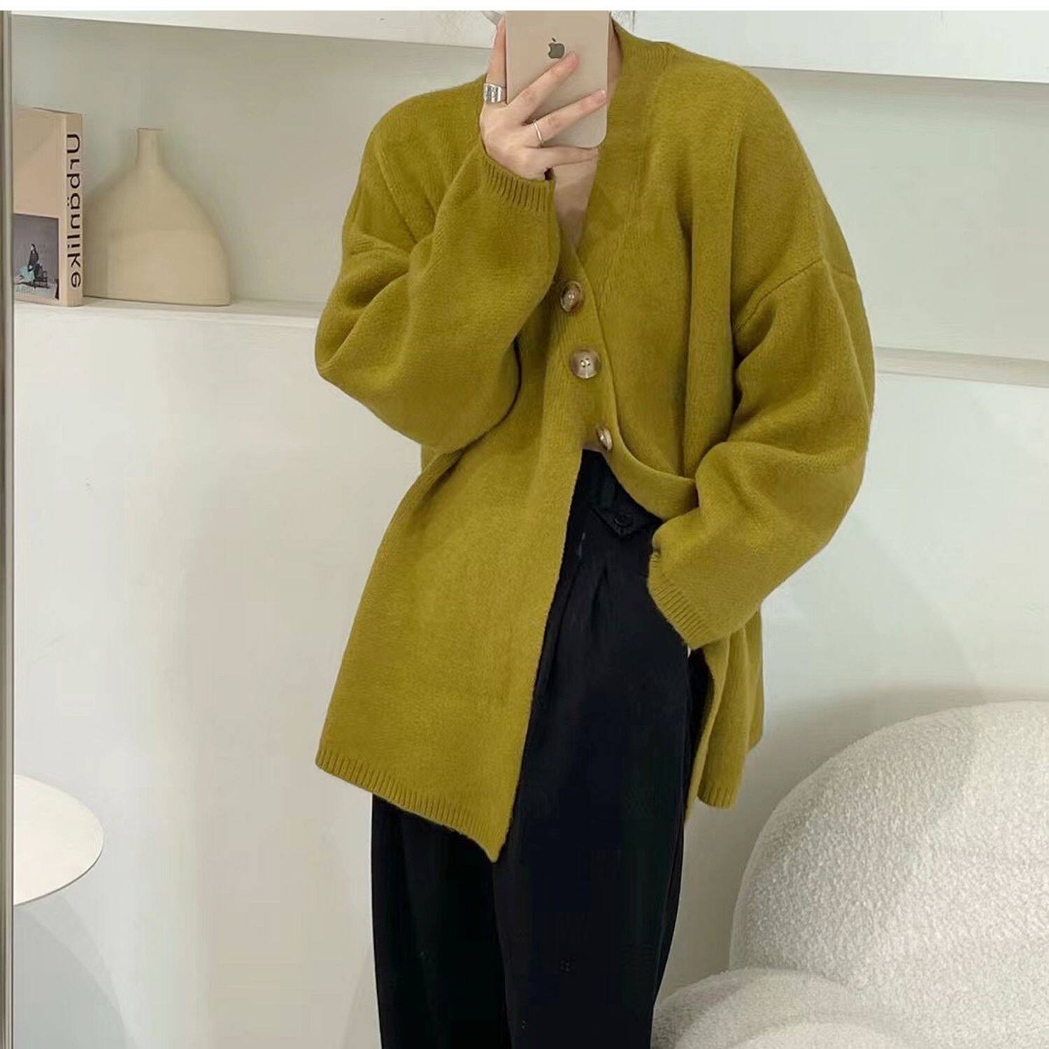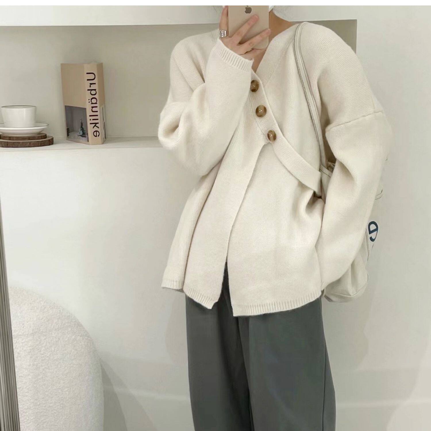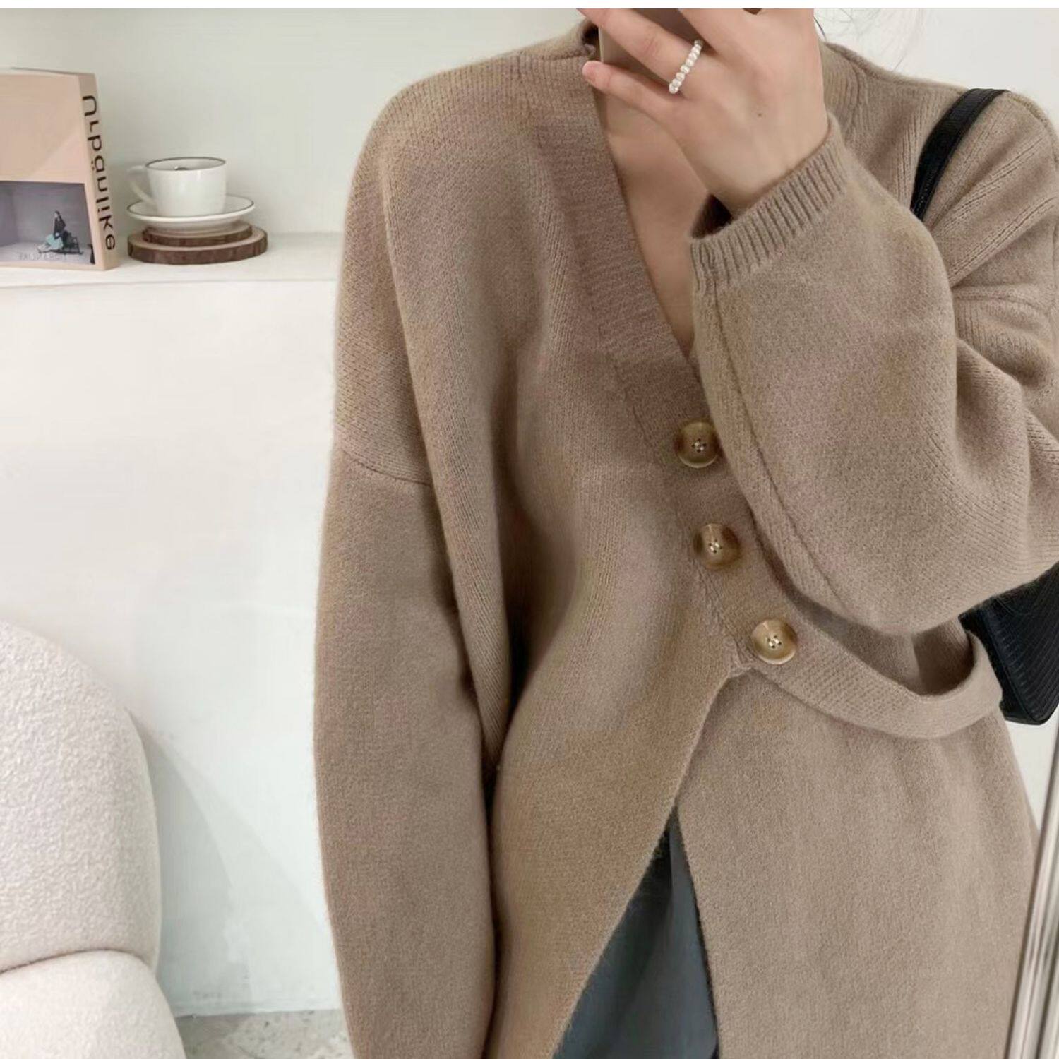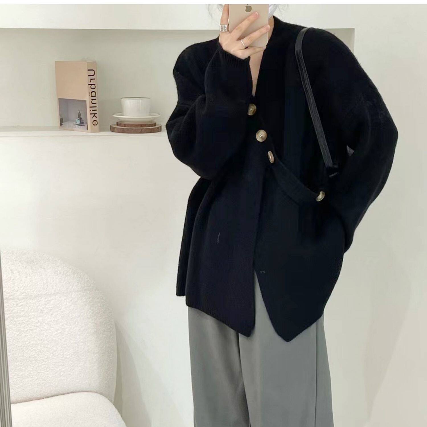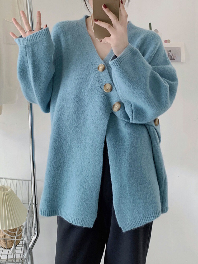 Свитер, небольшая дизайнерская куртка, лонгслив, кардиган, в корейском стиле, тренд сезона, оверсайз, увеличенная толщина
