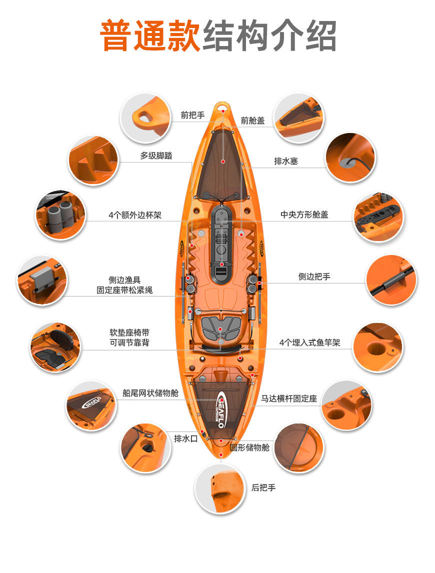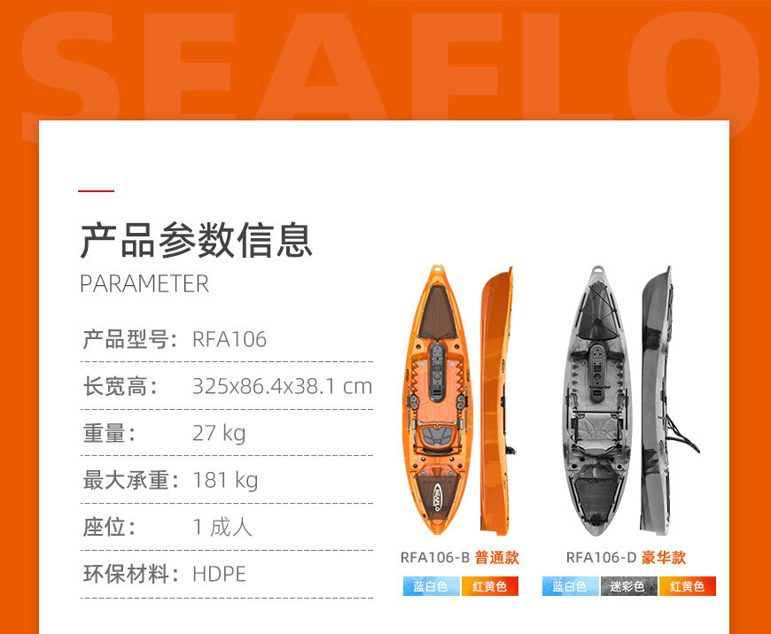 Seaflo Kayak Профессиональная рыбацкая кожаная дорога Азиатская лодка для лодки лодки каяк