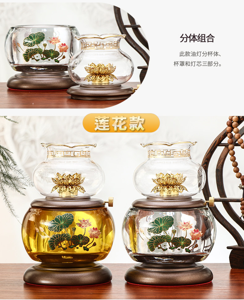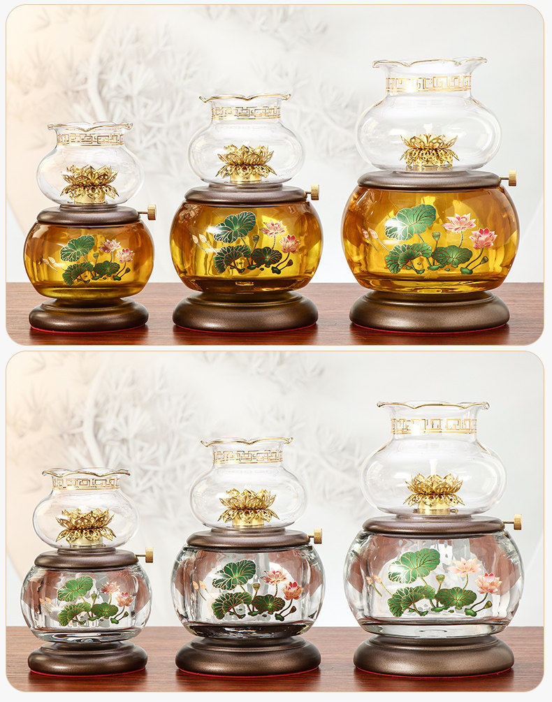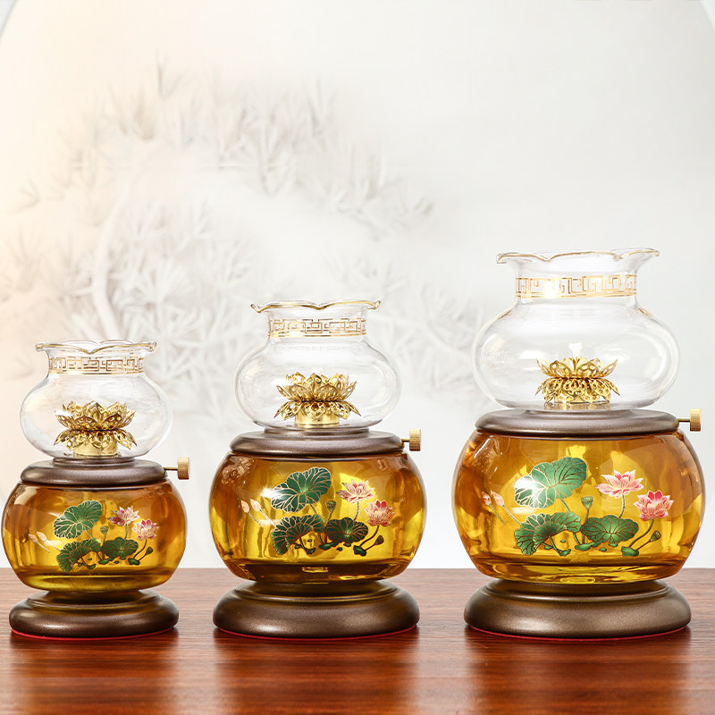 Чистое медное стеклянное масляное масло из топленого масла перед светильниками Будды, домашние лампы для топленого масла, будды на длительный срок