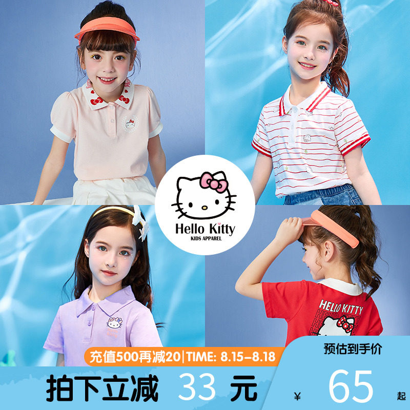 Hello Kitty, летняя милая трикотажная футболка polo, детская одежда, подходит для подростков, короткий рукав