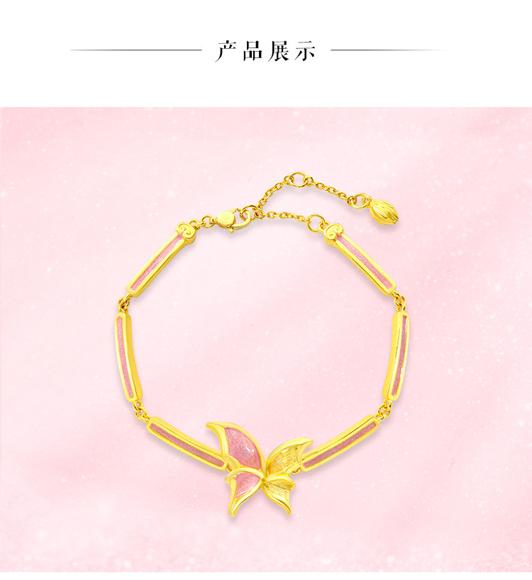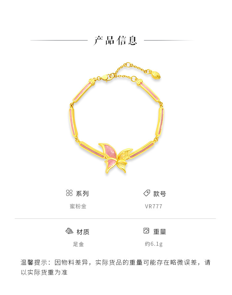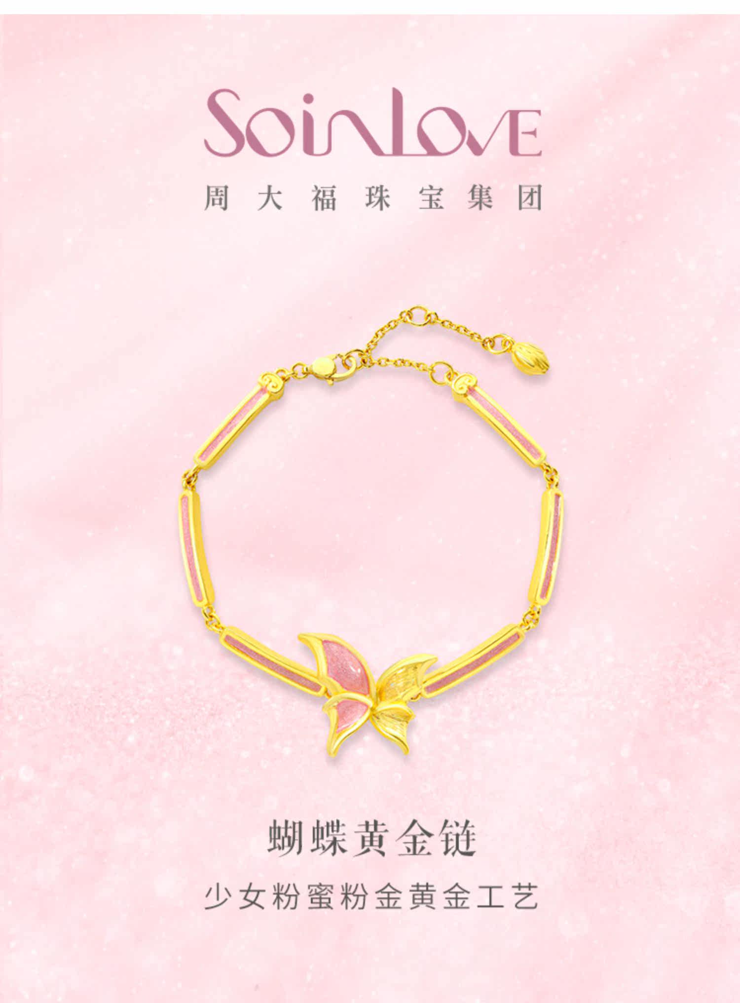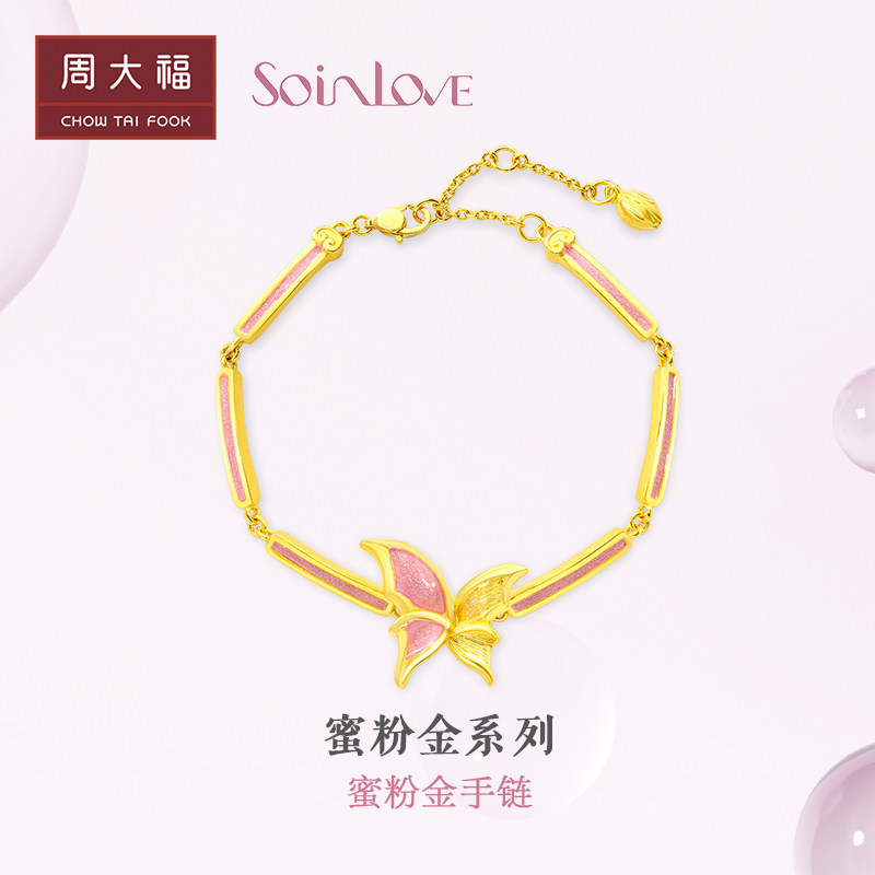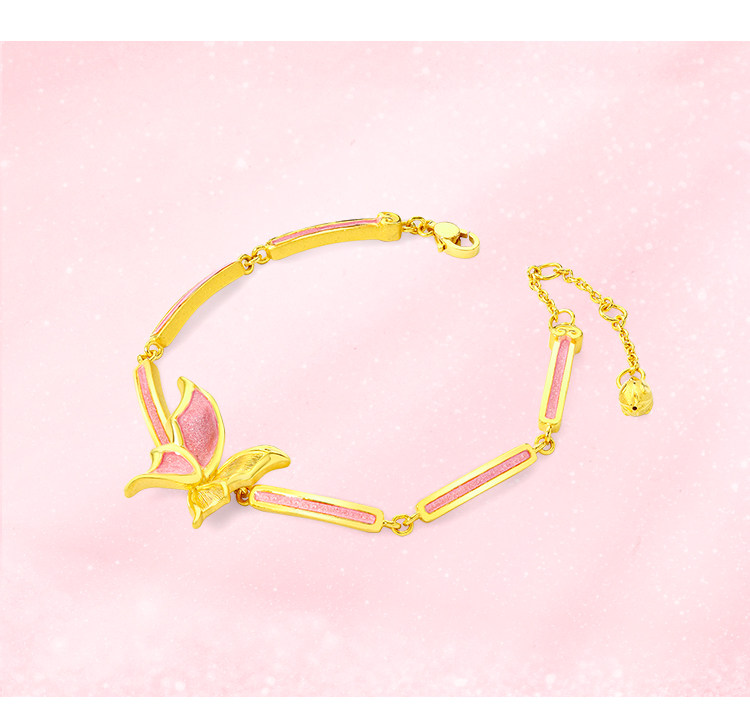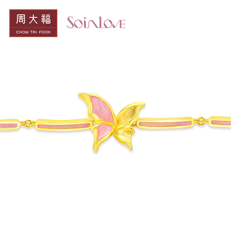 Chow Tai Fook Soinlove Honey Powder Golden Butterfly Girl Powder Bargin Foot Gold Bracelet Vr777