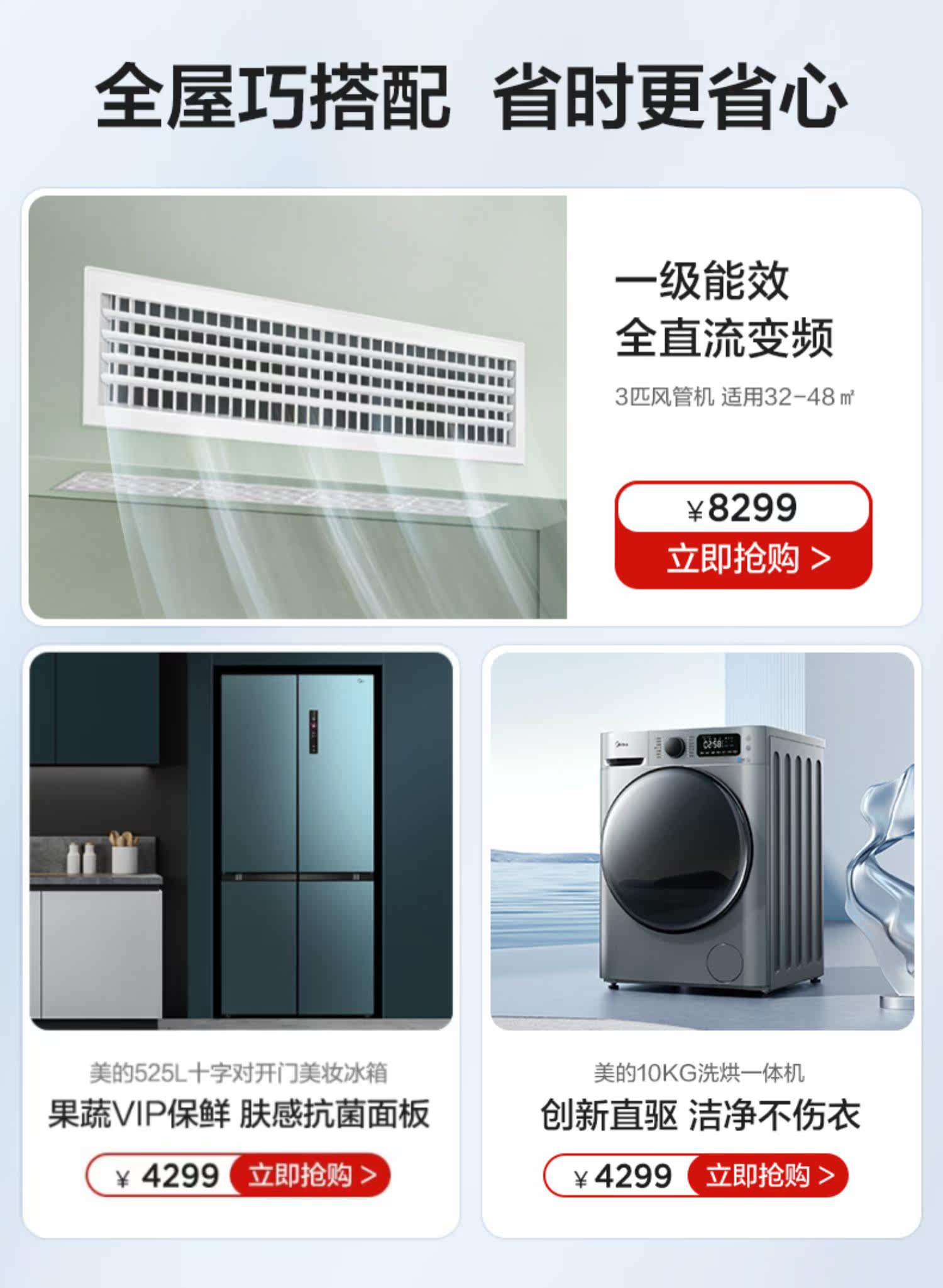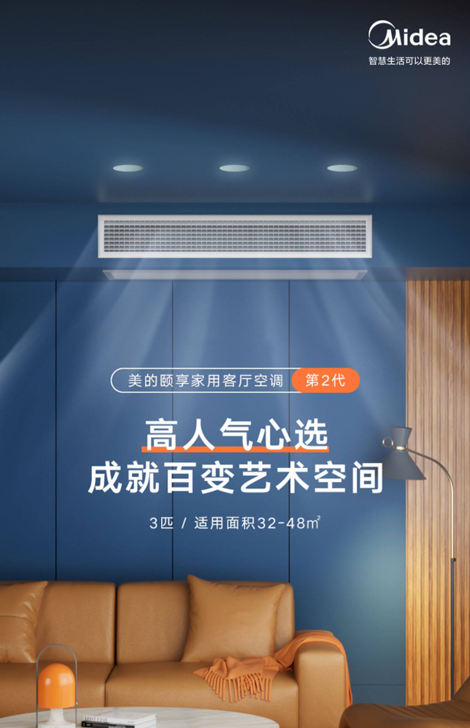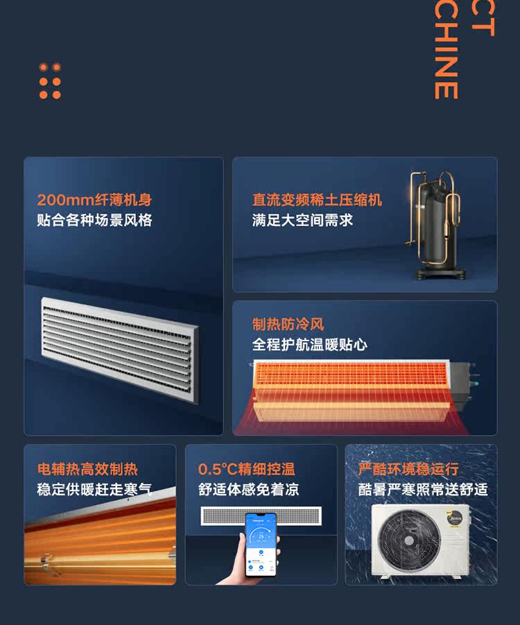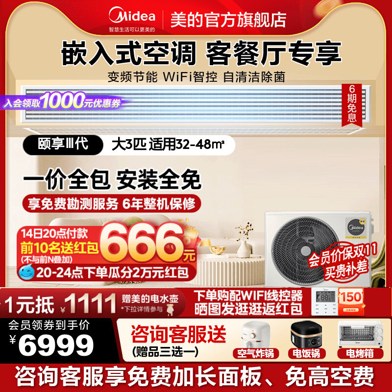 Домашняя гостиная Midea Центральная воздушная кондиционирование скрытых больших больших 3 -го пальцев, одного сопротивления, холодной и теплой трубной машины, чтобы насладиться третьим поколением