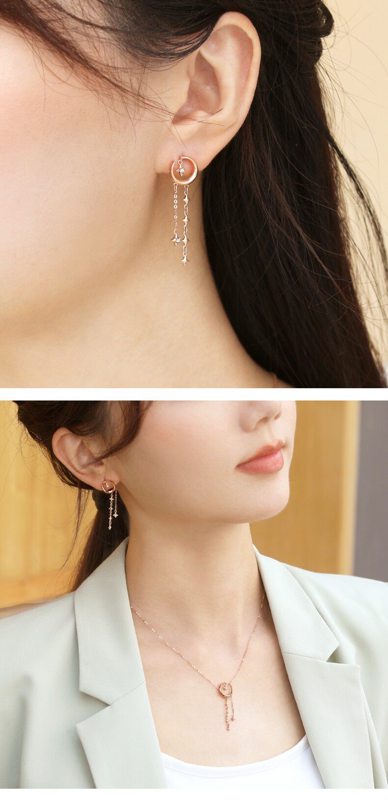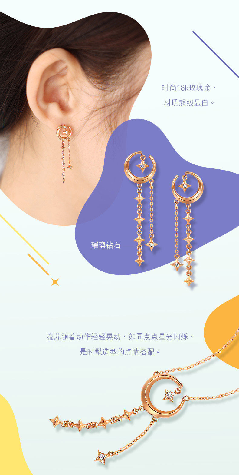 Мятное звездное небо на день Святого Валентина, серьги, подарок на день рождения, золото 750 пробы