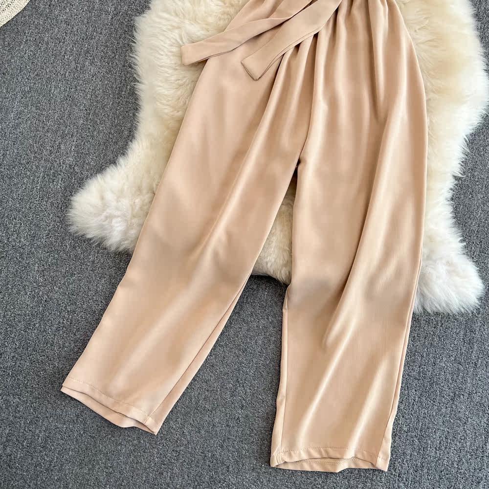Приталенный корсет, штаны, комбинезон, открытые плечи, высокая талия