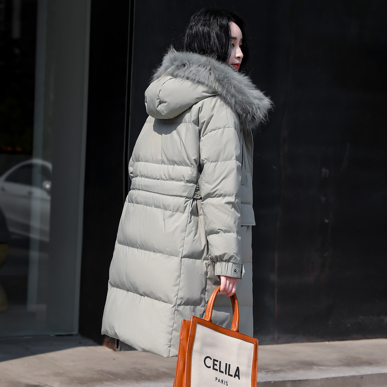 Демисезонная куртка, приталенный корсет, длинный модный пуховик, средней длины