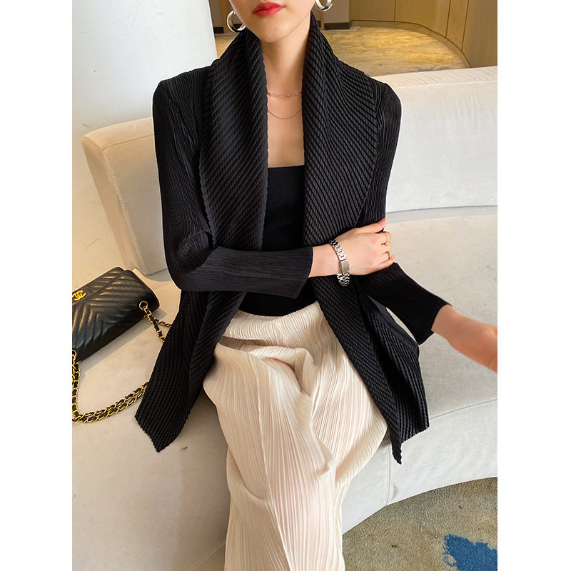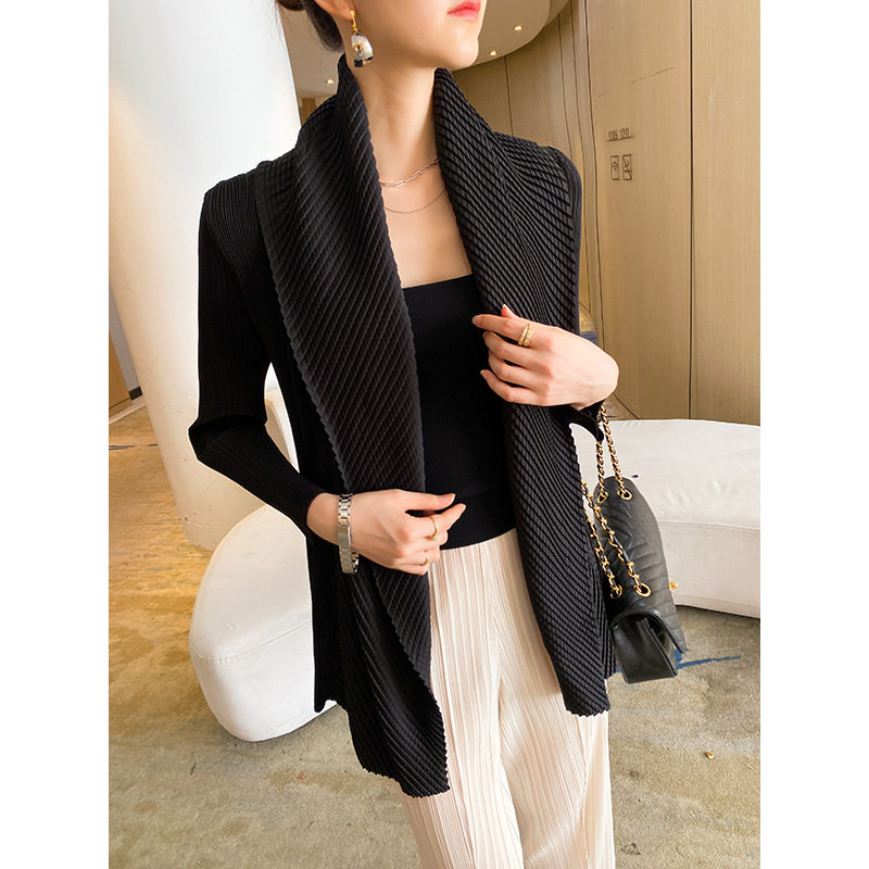 Пиджак классического кроя, весенний шарф, черный кардиган, в западном стиле, свободный крой