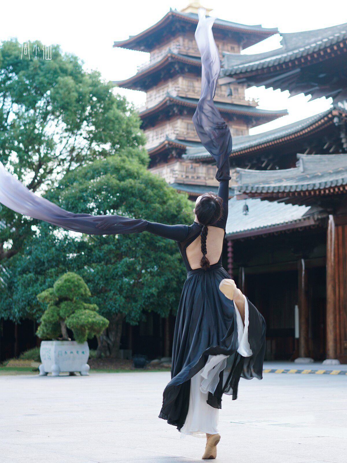 周小仙儿 Оригинальная классическая черная длинная юбка, комплект, градиент, широкая цветовая палитра
