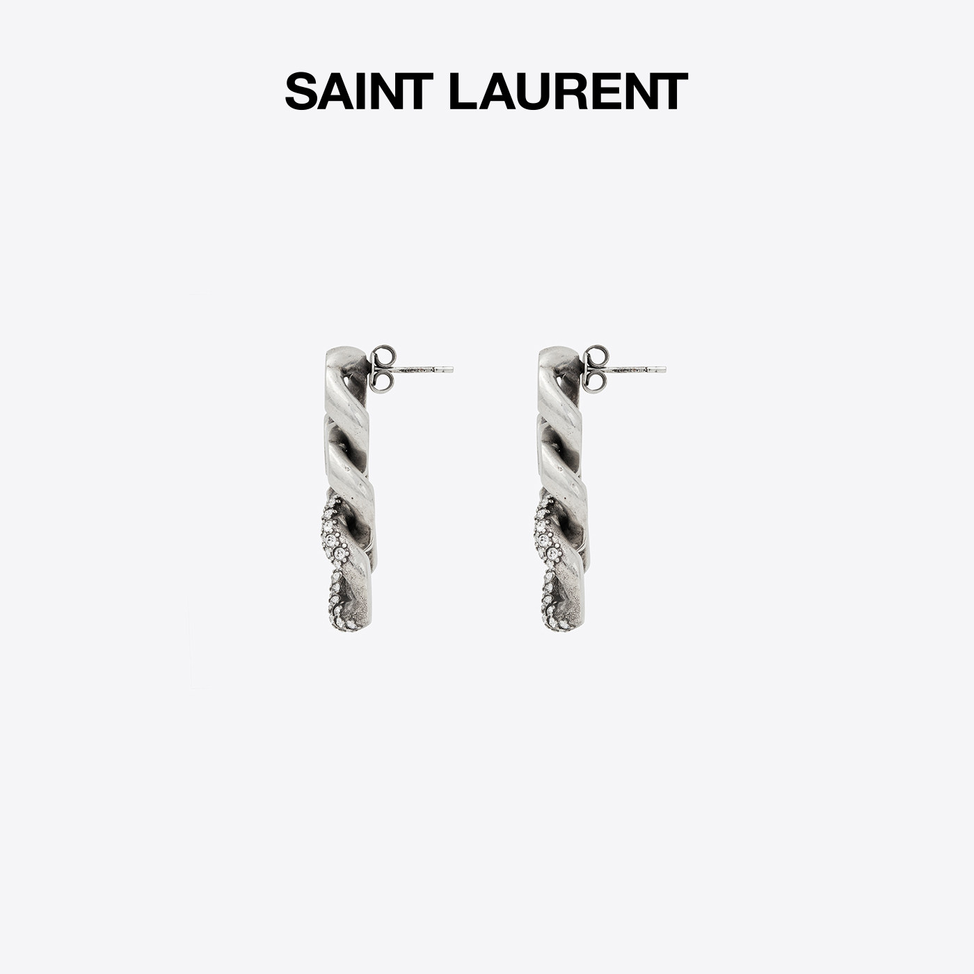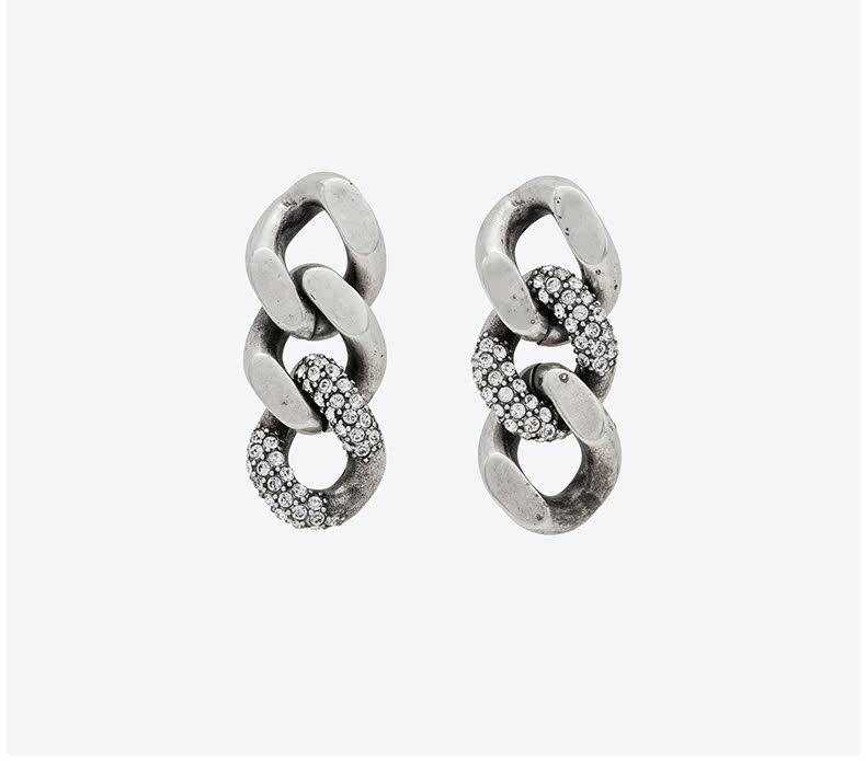 YSL/圣罗兰 Дамы окисляют серебряные серебристые серьги с толстыми металлическими цепь Rhein Stone
