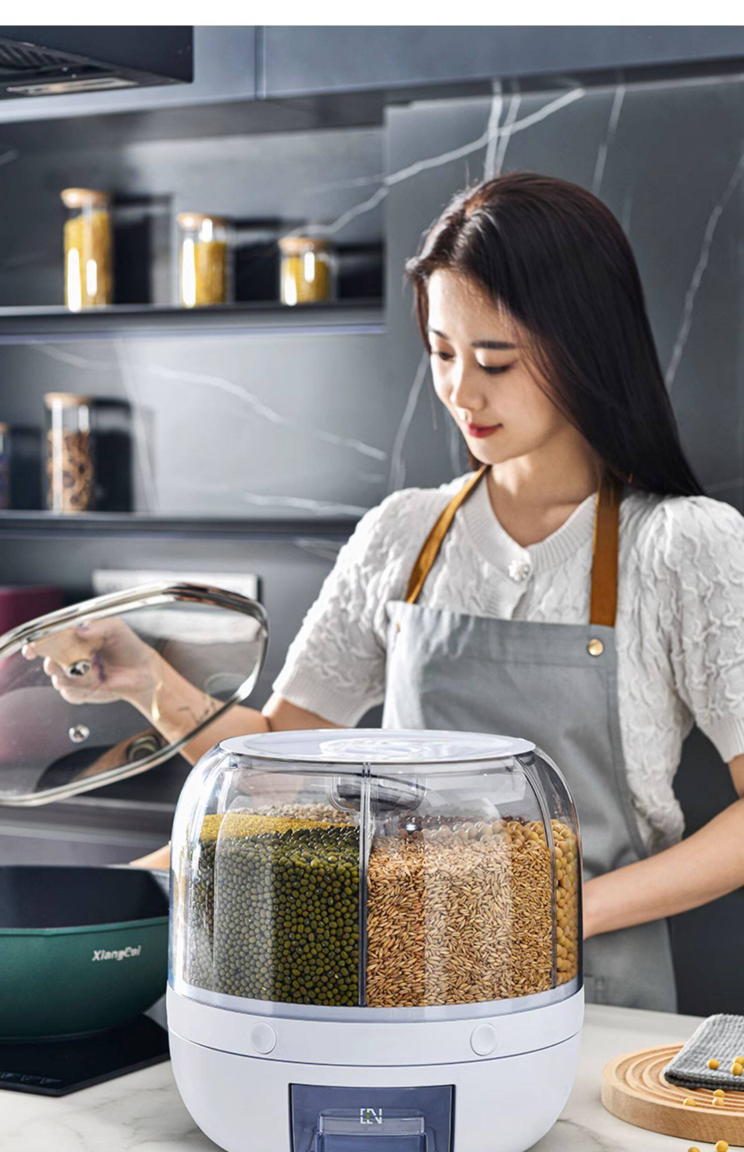 Grasson Разное пищевую коробку -Обновление Doudan Storage Bar Вращающиеся вращающиеся рисовые бочки зернового бака
