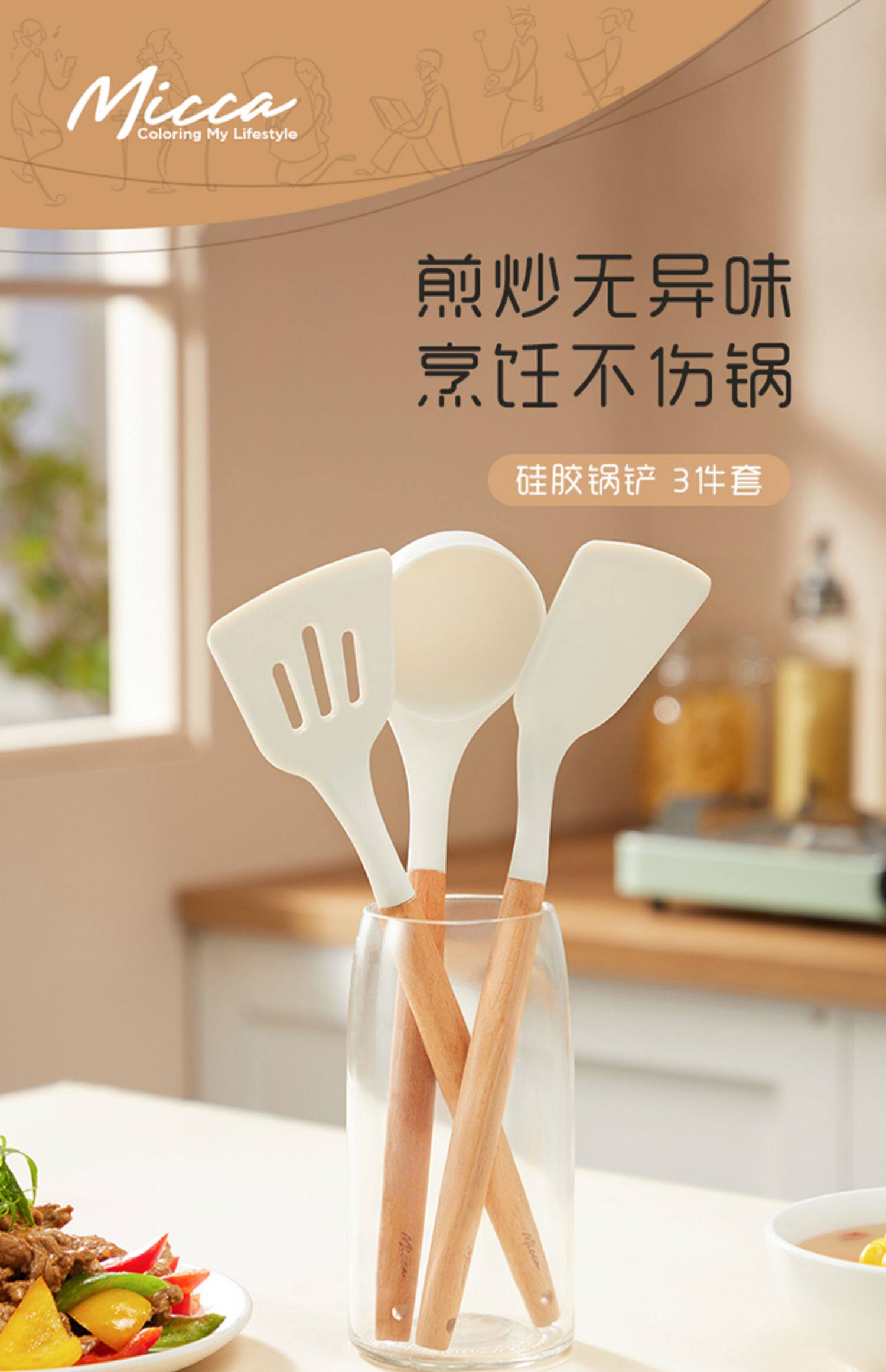 Meimei micca не -шалочная силиконовая силиковая силикальная плаза лопата лопата лопаточника деревянная жареная ложка жаренная ложка жаренная лопата