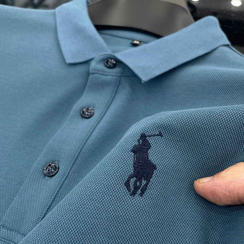 Шелковая дышащая базовая приятная телу летняя хлопковая футболка с коротким рукавом, V-образный вырез, высокий воротник, защита от солнца