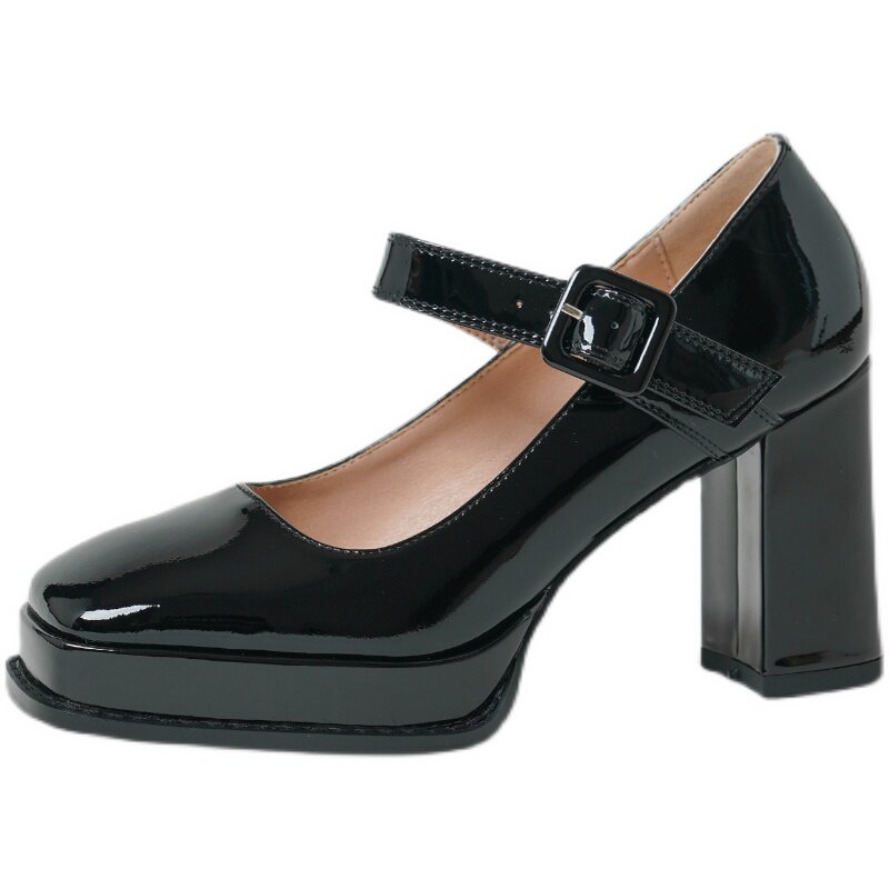 Черные туфли на высоком каблуке с ремешком, коллекция 2023, из натуральной кожи