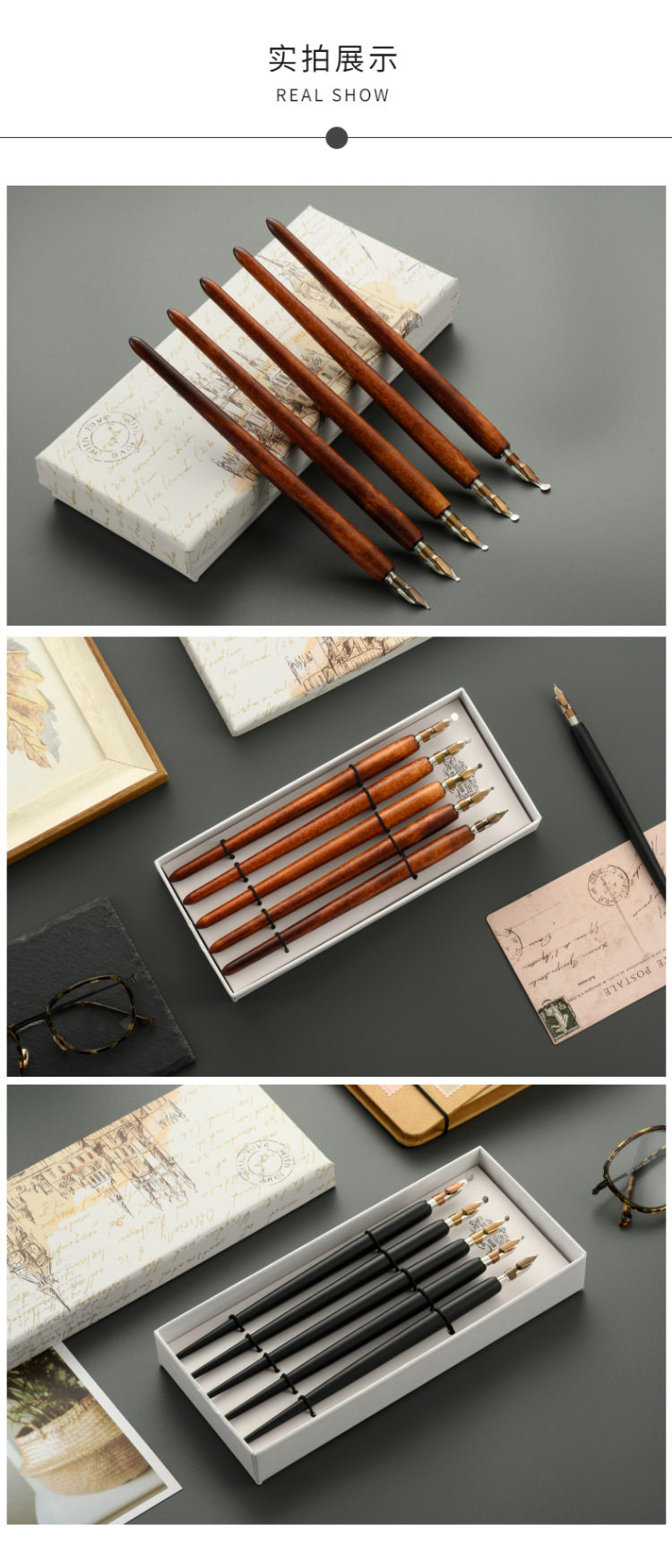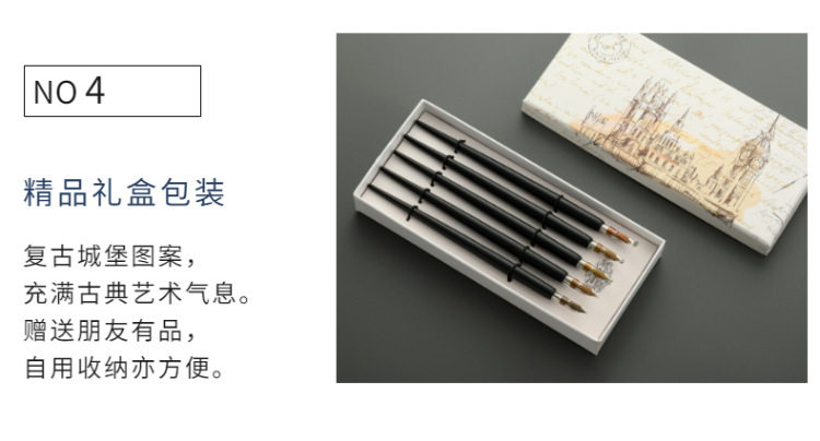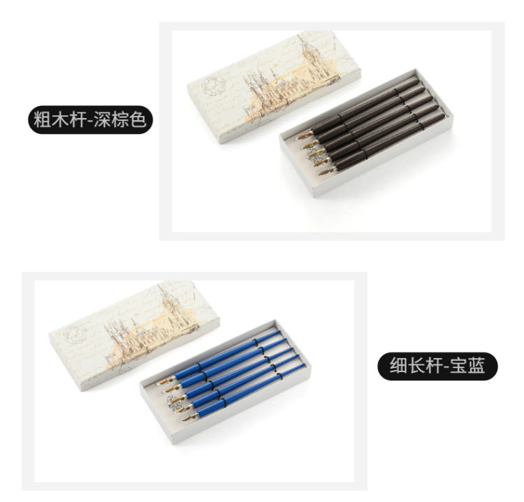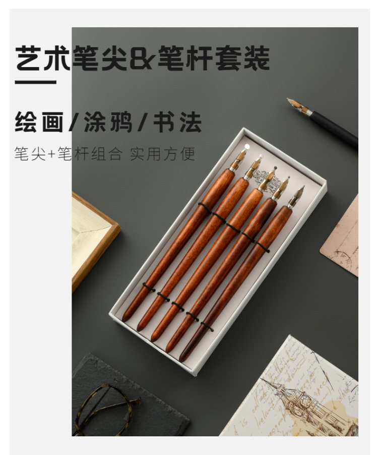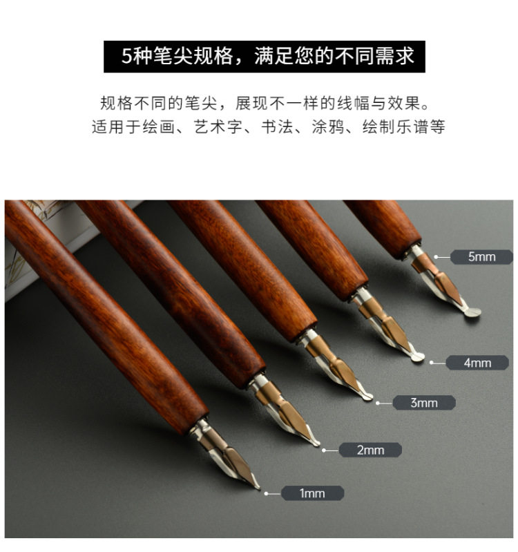 [5 кусочков установки] Коробка для водяного хода, деревянная стержня, погруженные чернила ретро -эс -чаевые, новичок, новичок линия комиксы круглый цветочный корпус, английская каллиграфия, готическое искусство, подарки на день рождения