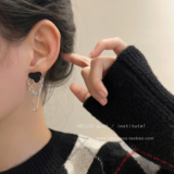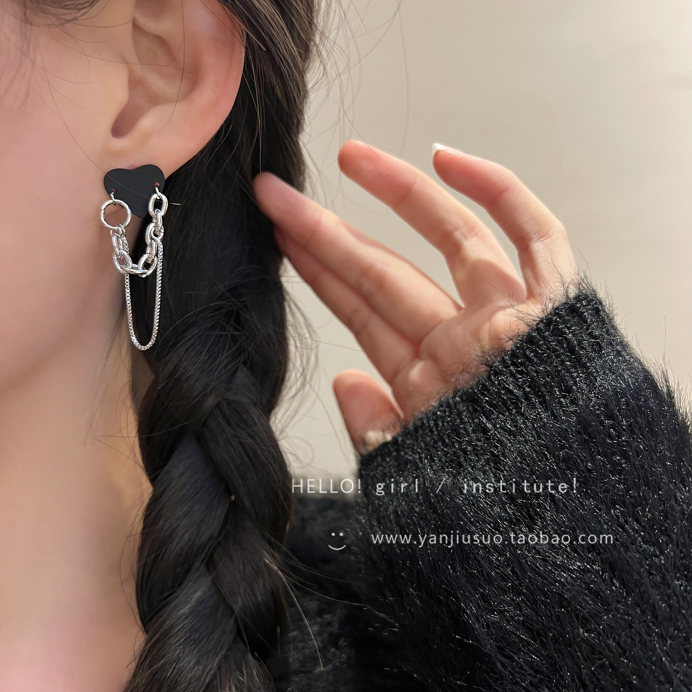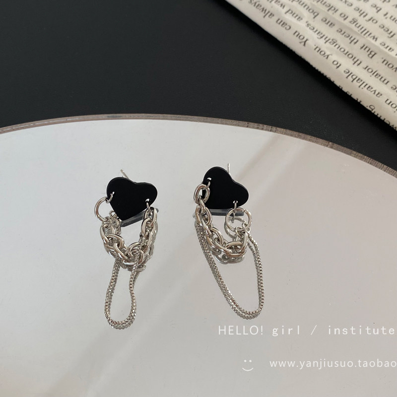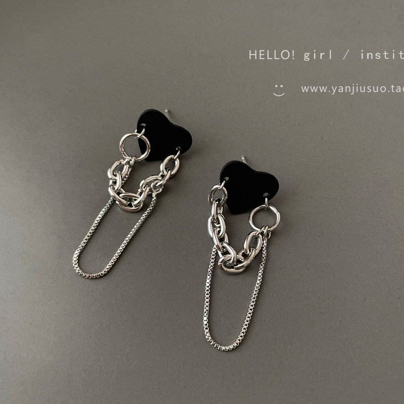 Ретро черная цепь, небольшие дизайнерские серьги, тренд сезона
