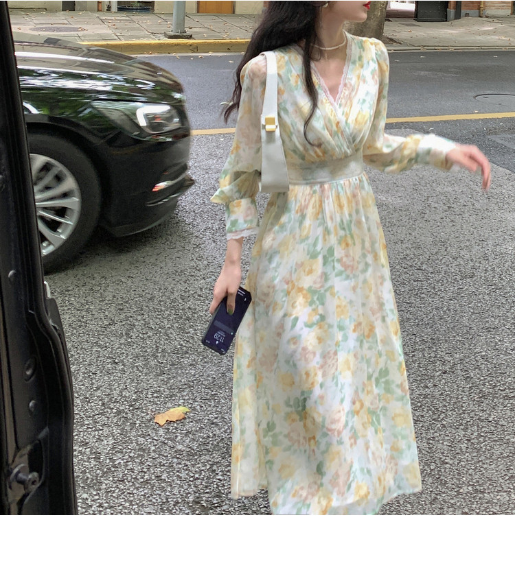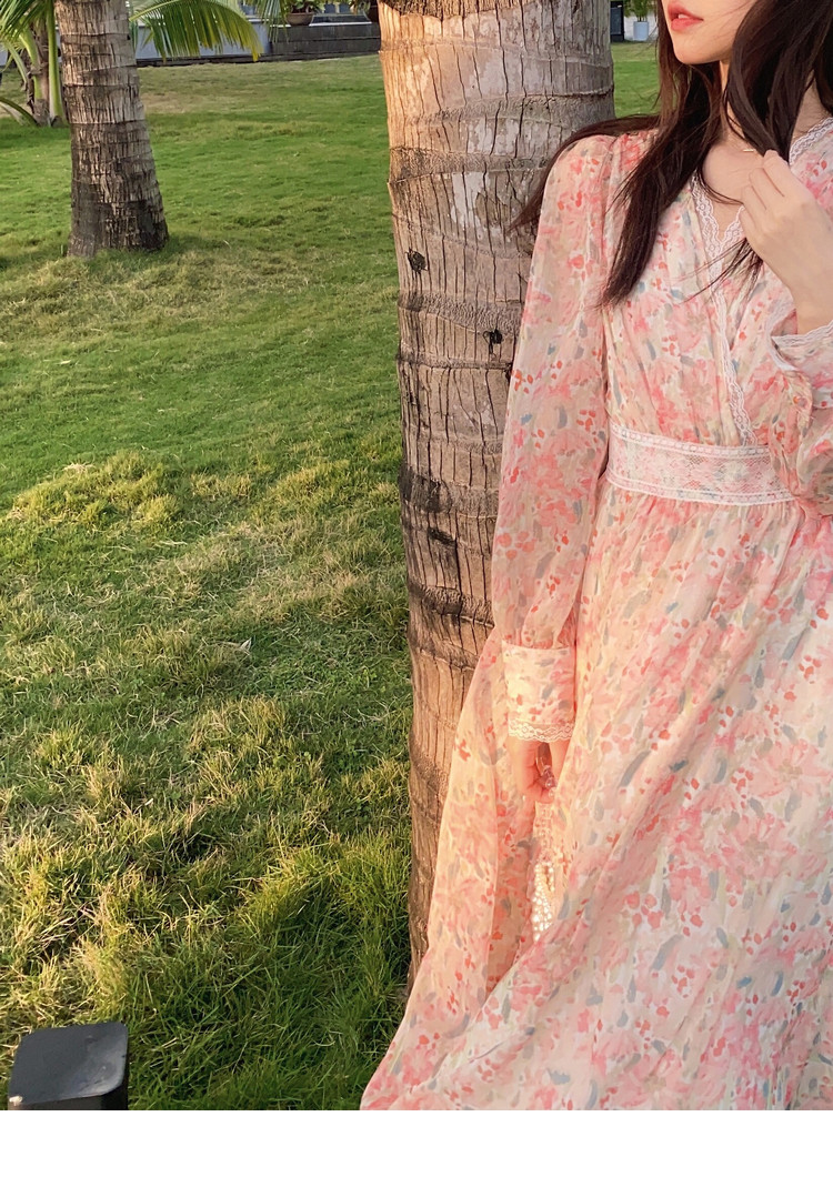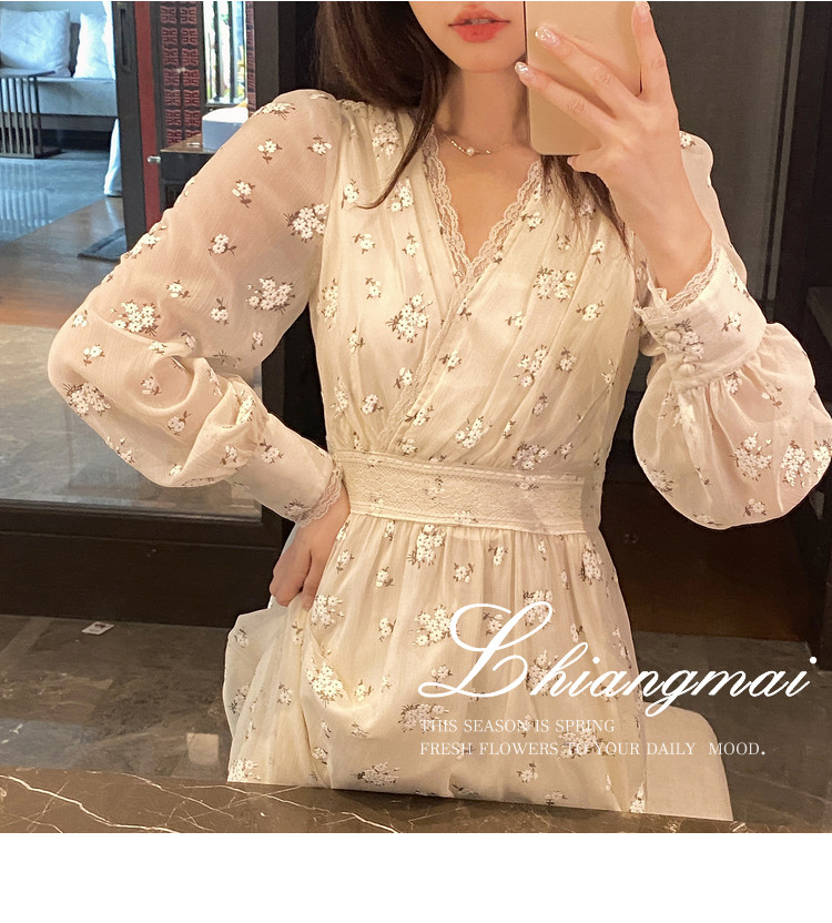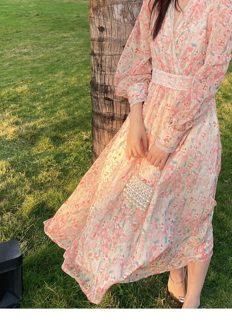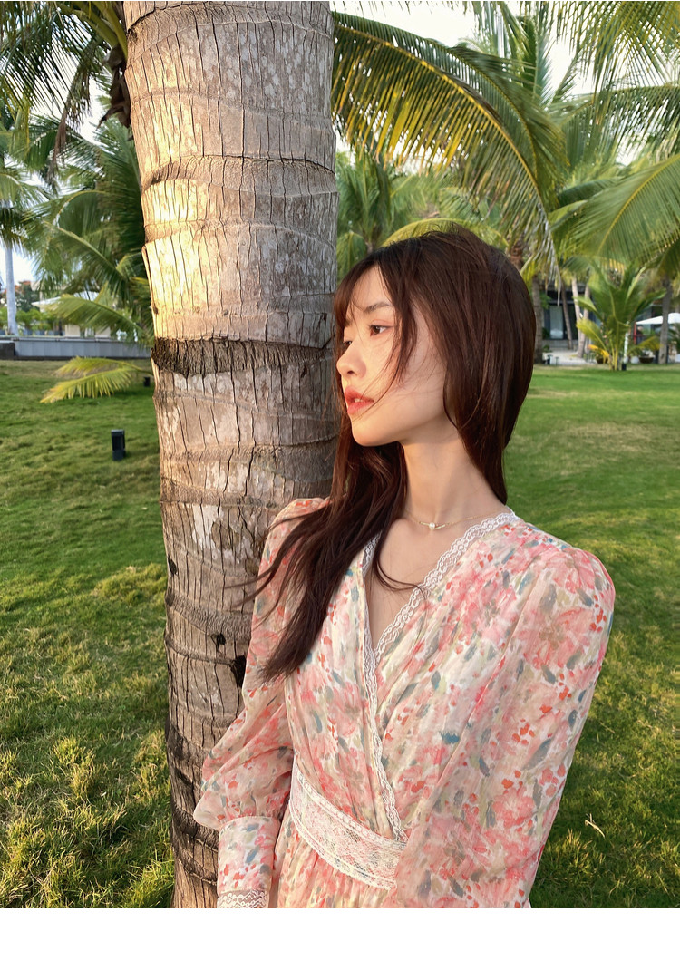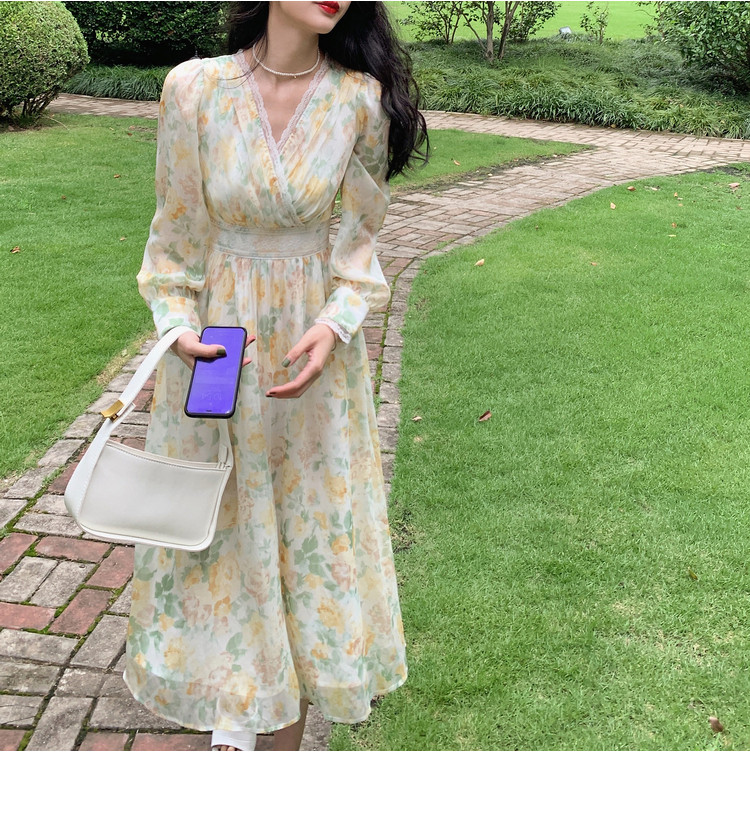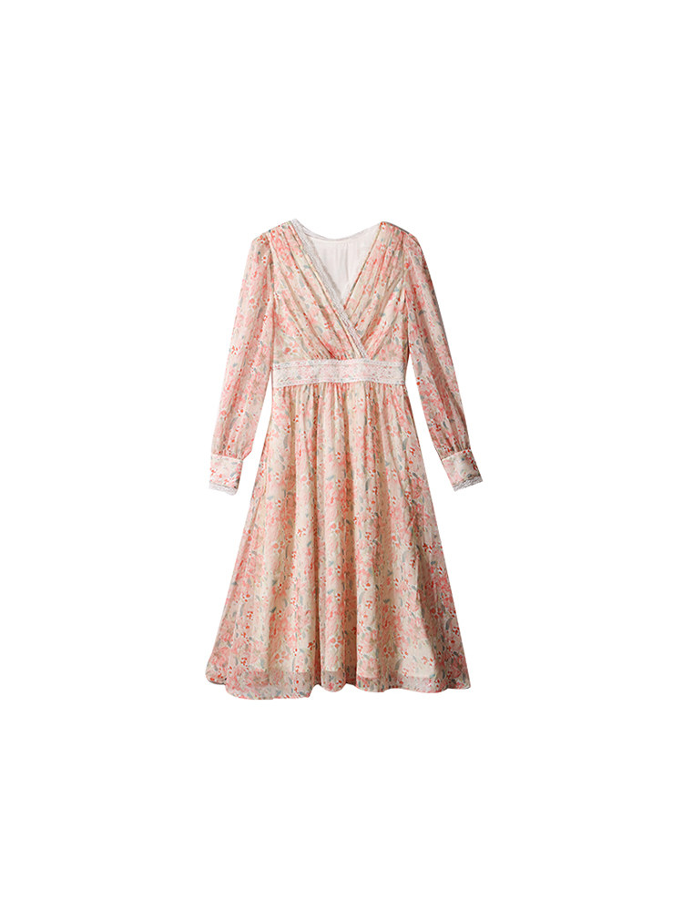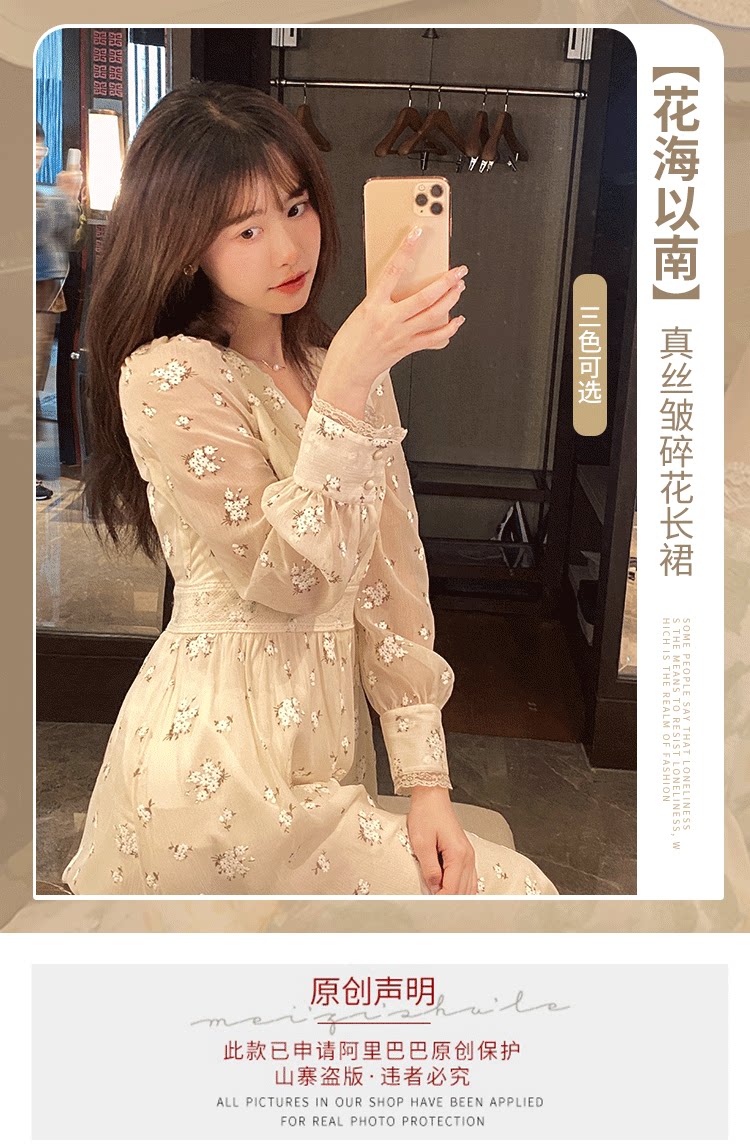 Шелковое кружевное платье, длинная юбка, в цветочек, V-образный вырез
