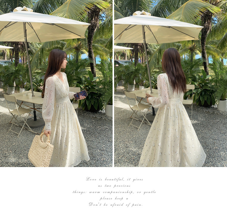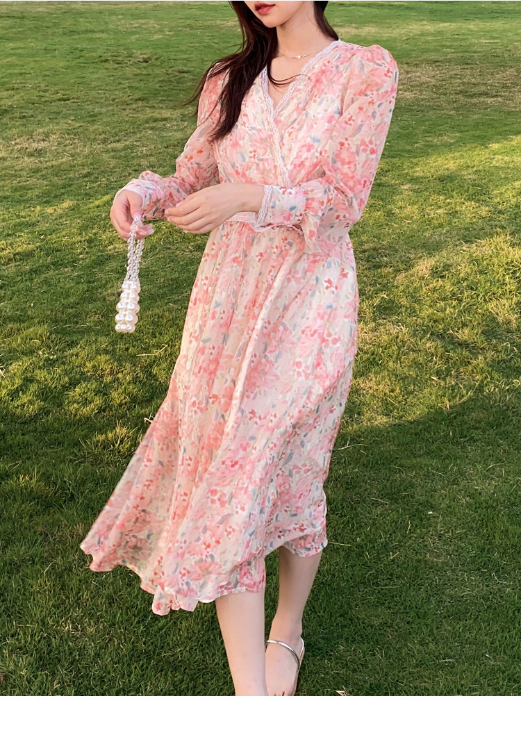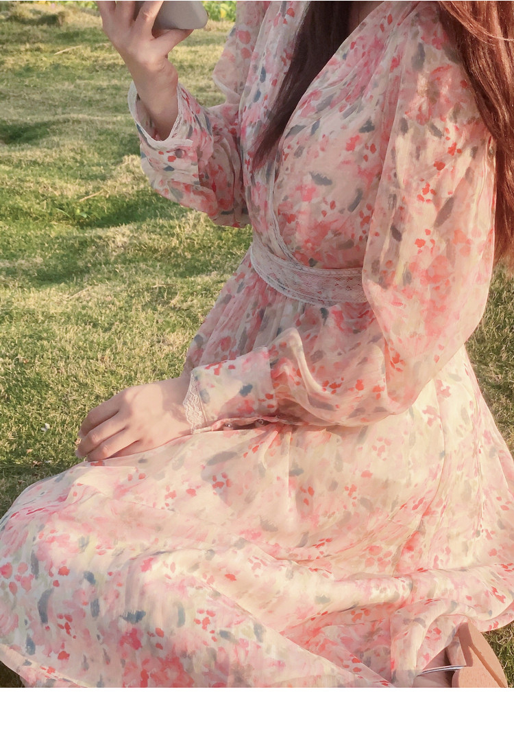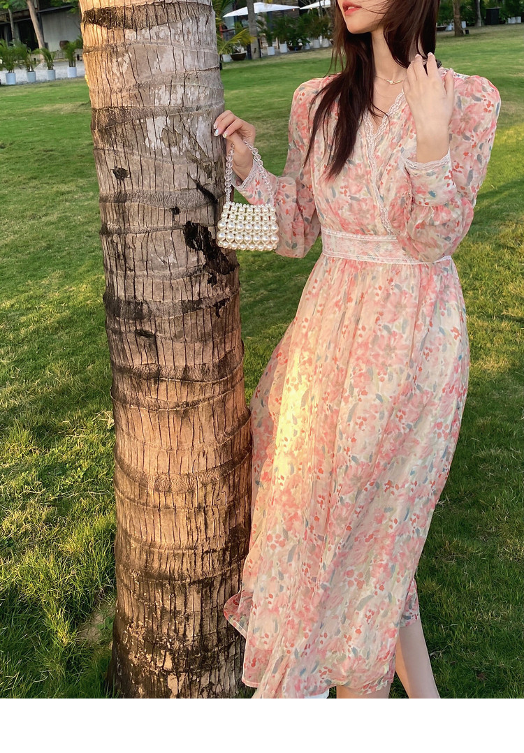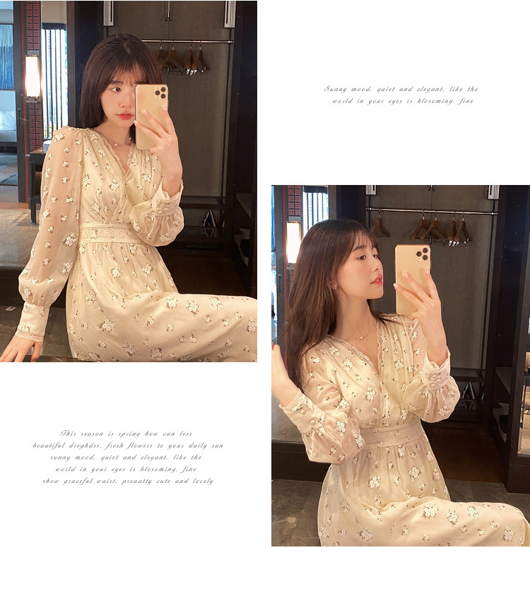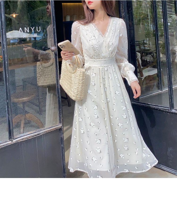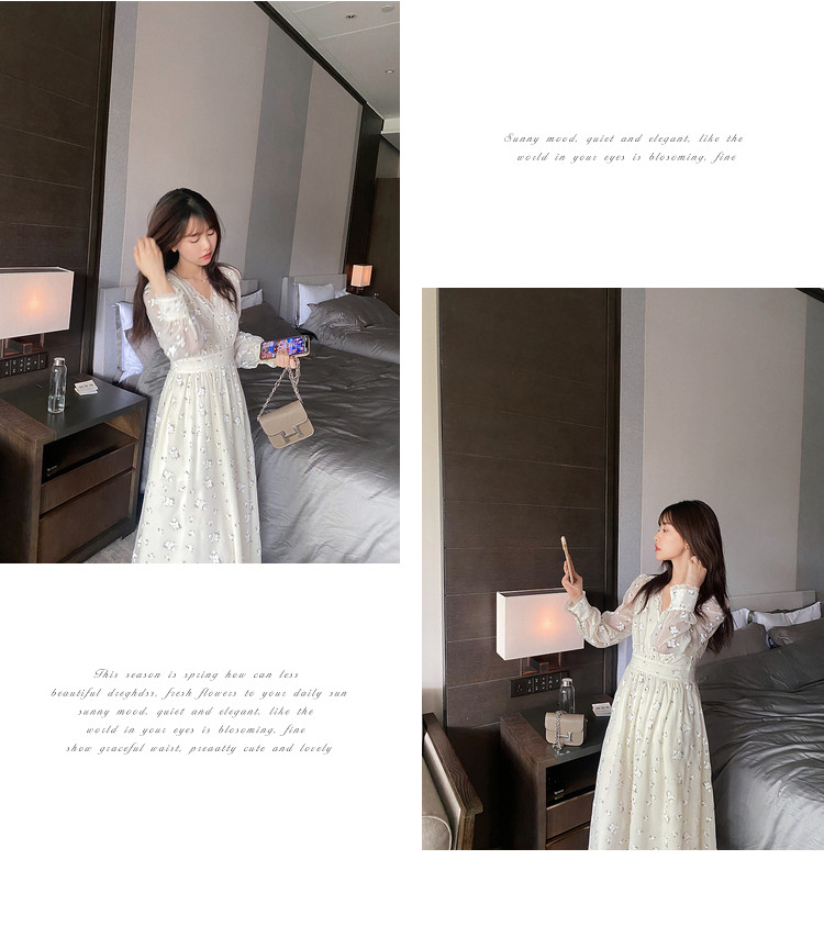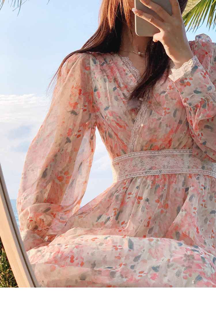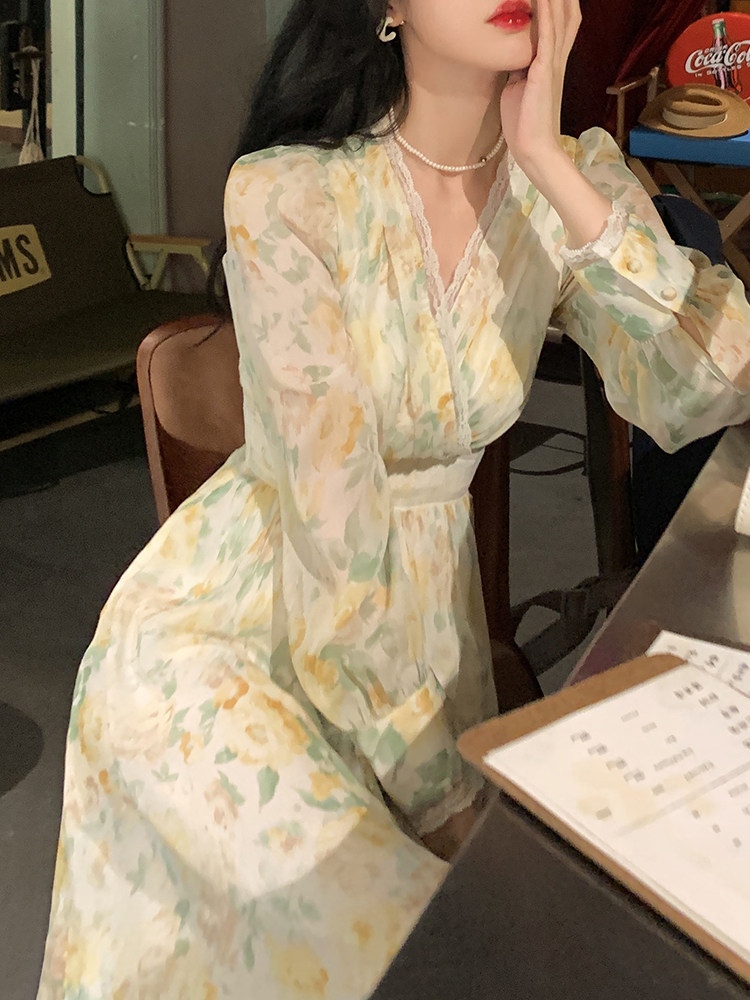Шелковое кружевное платье, длинная юбка, в цветочек, V-образный вырез