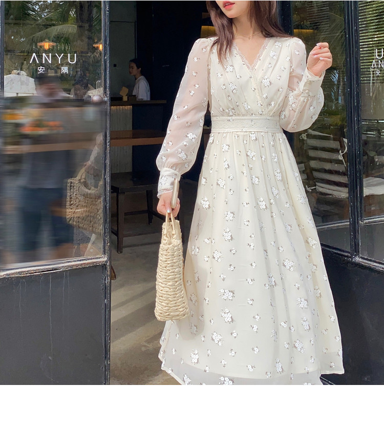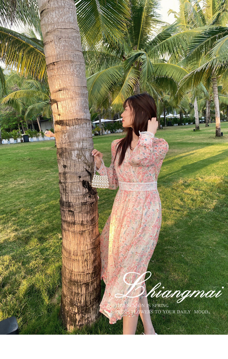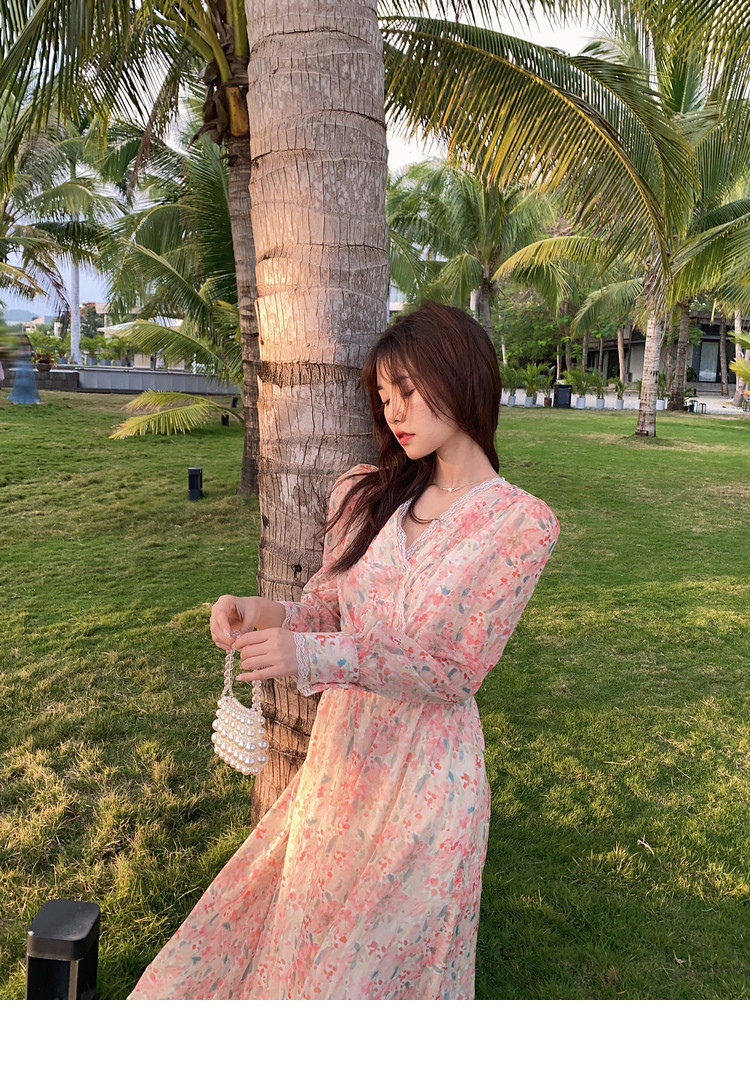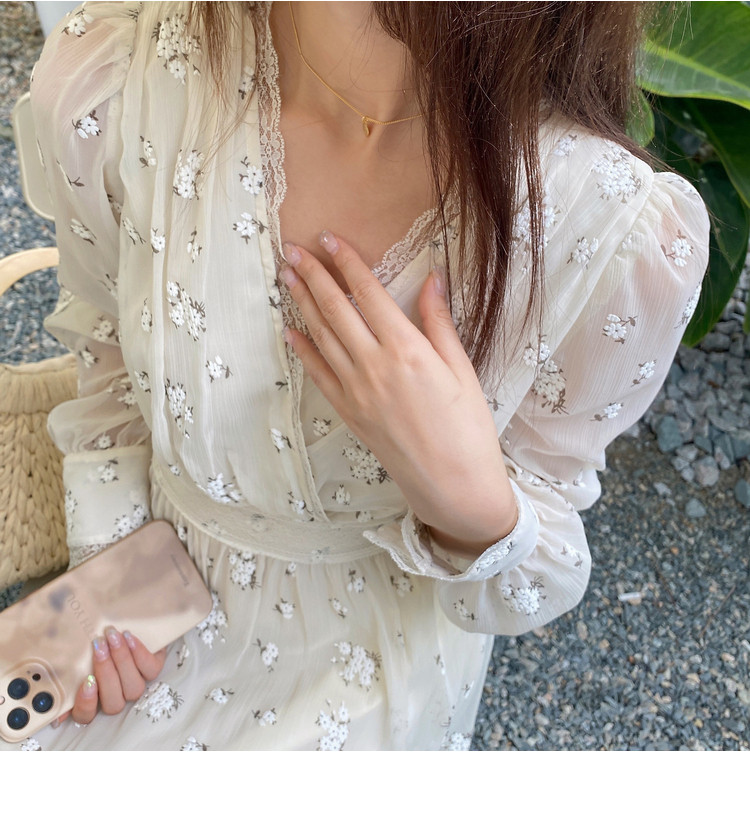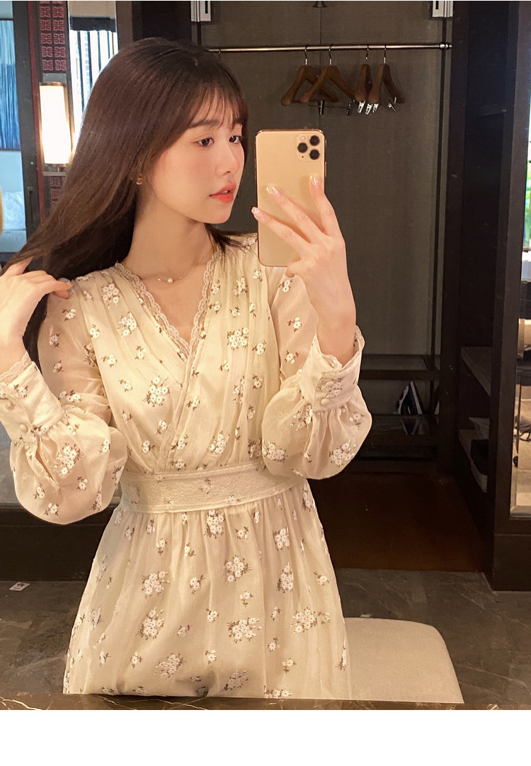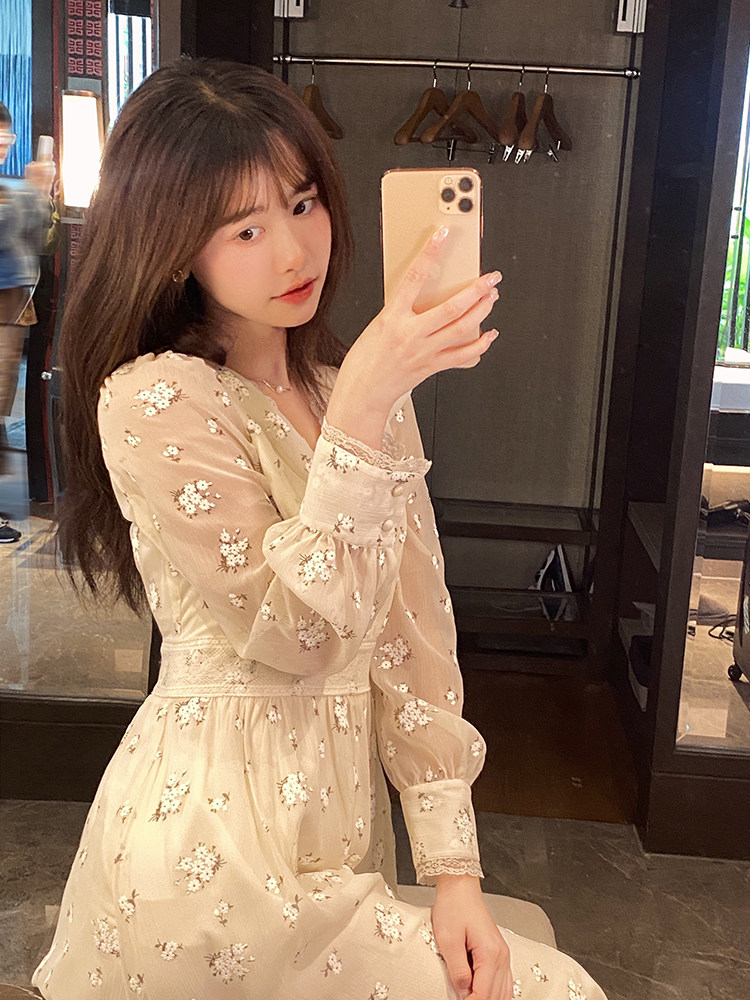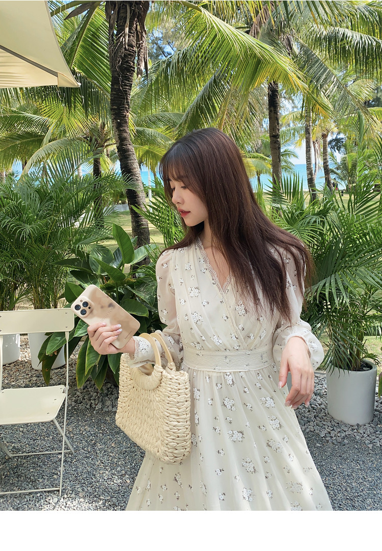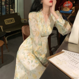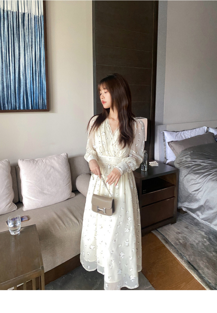 Шелковое кружевное платье, длинная юбка, в цветочек, V-образный вырез