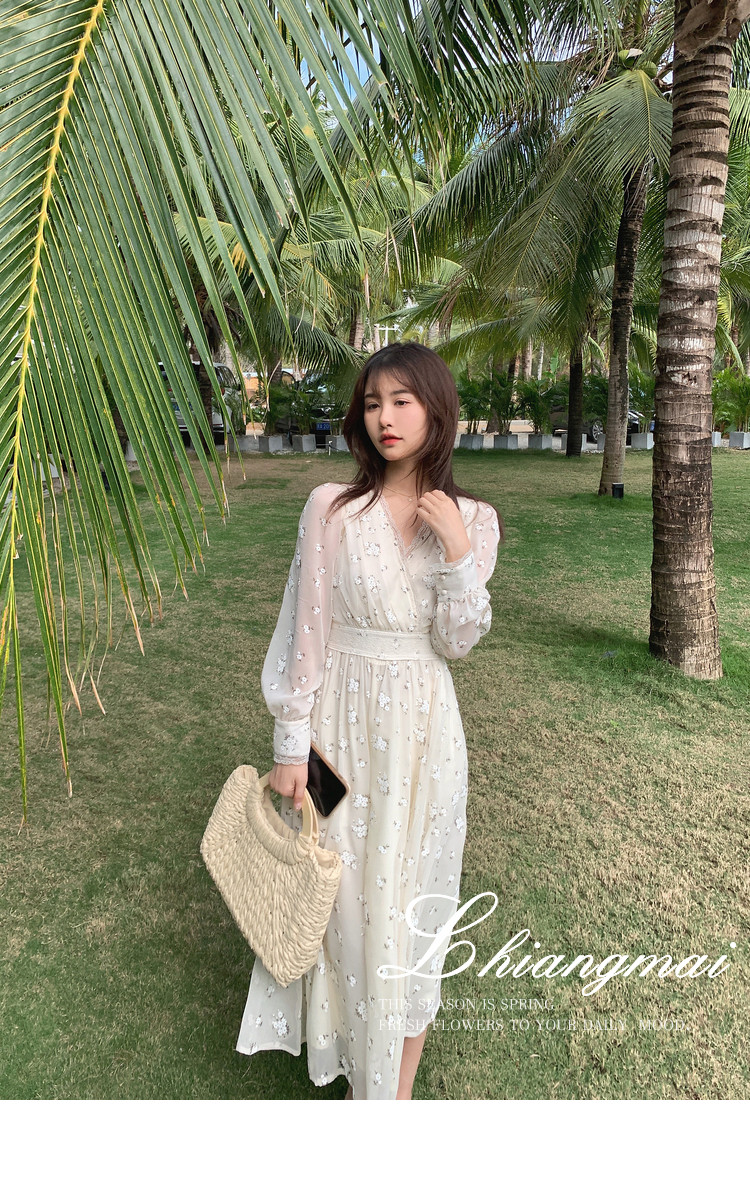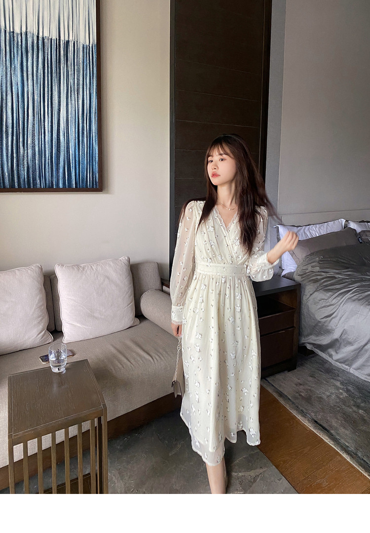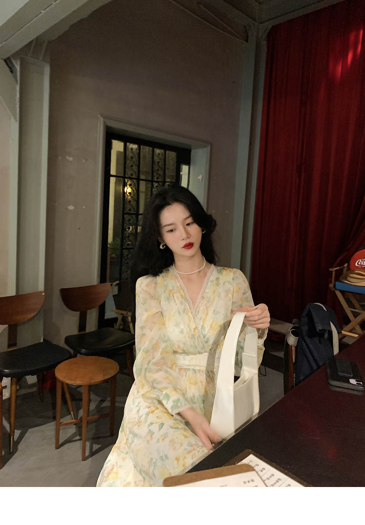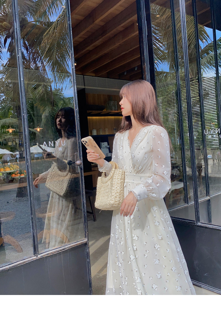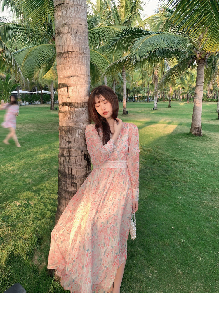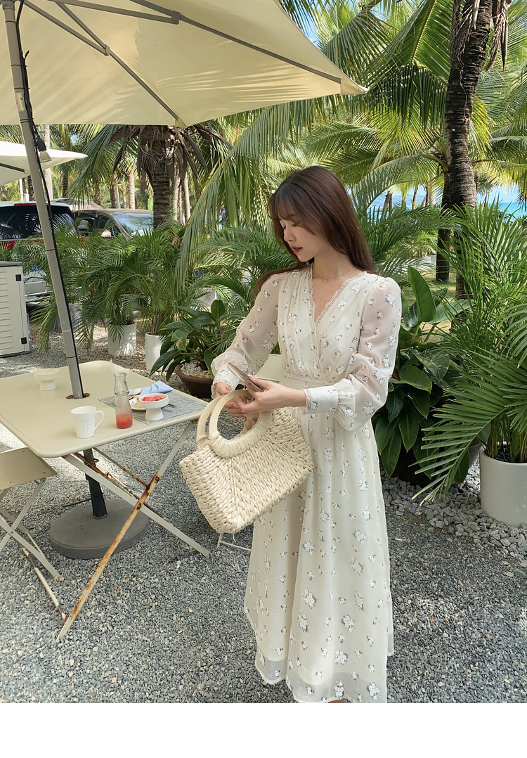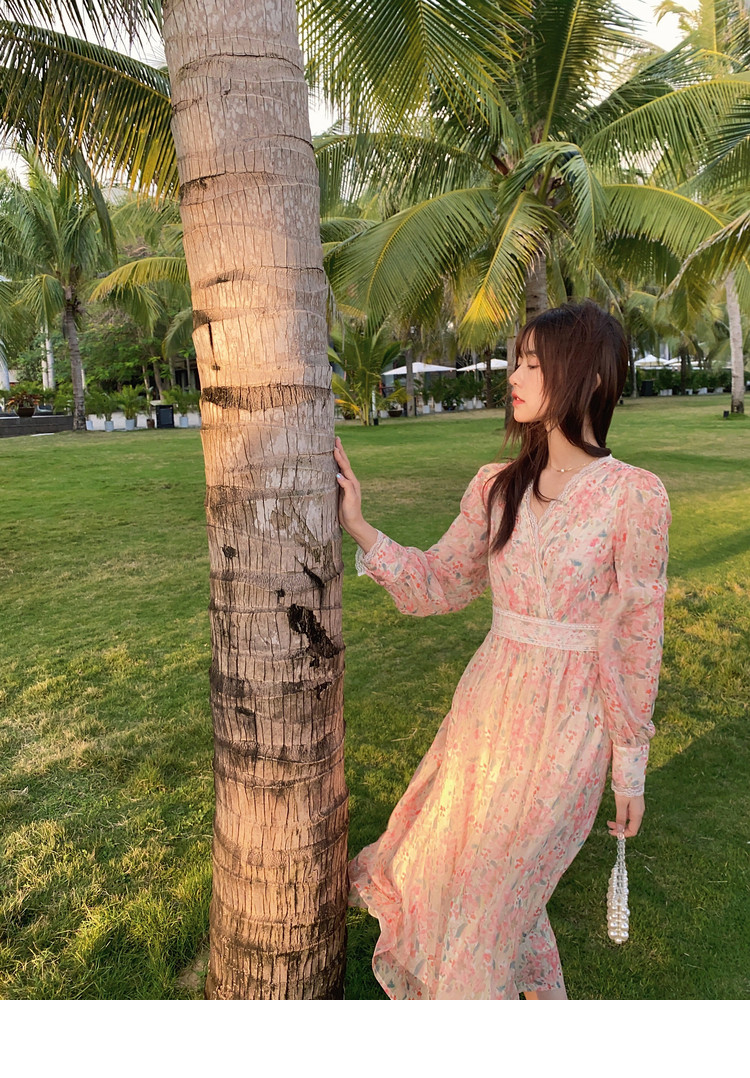 Шелковое кружевное платье, длинная юбка, в цветочек, V-образный вырез