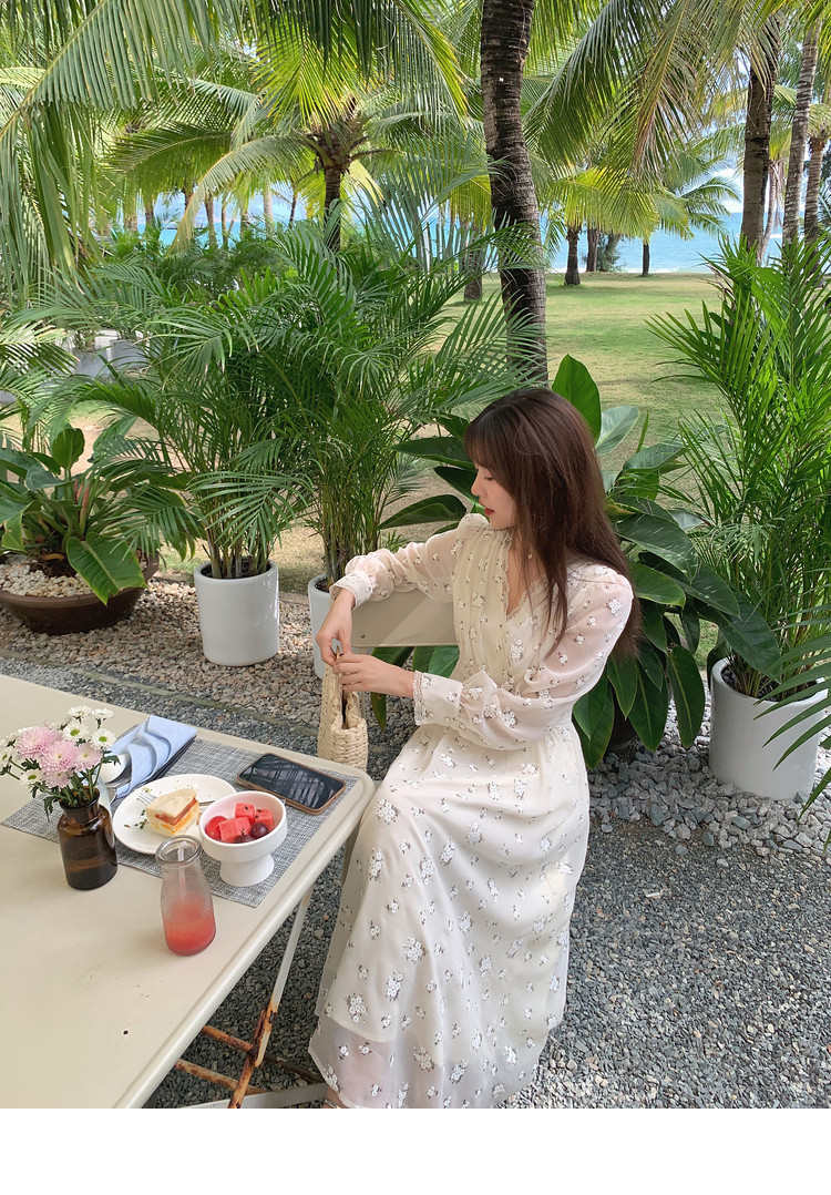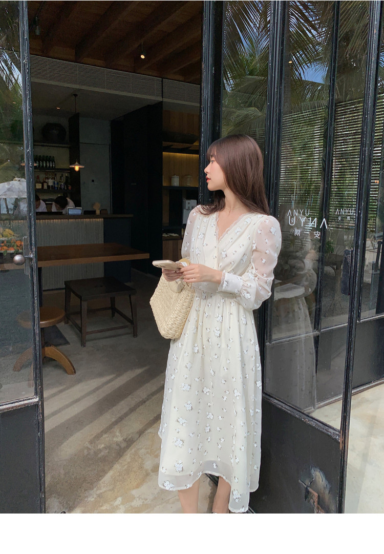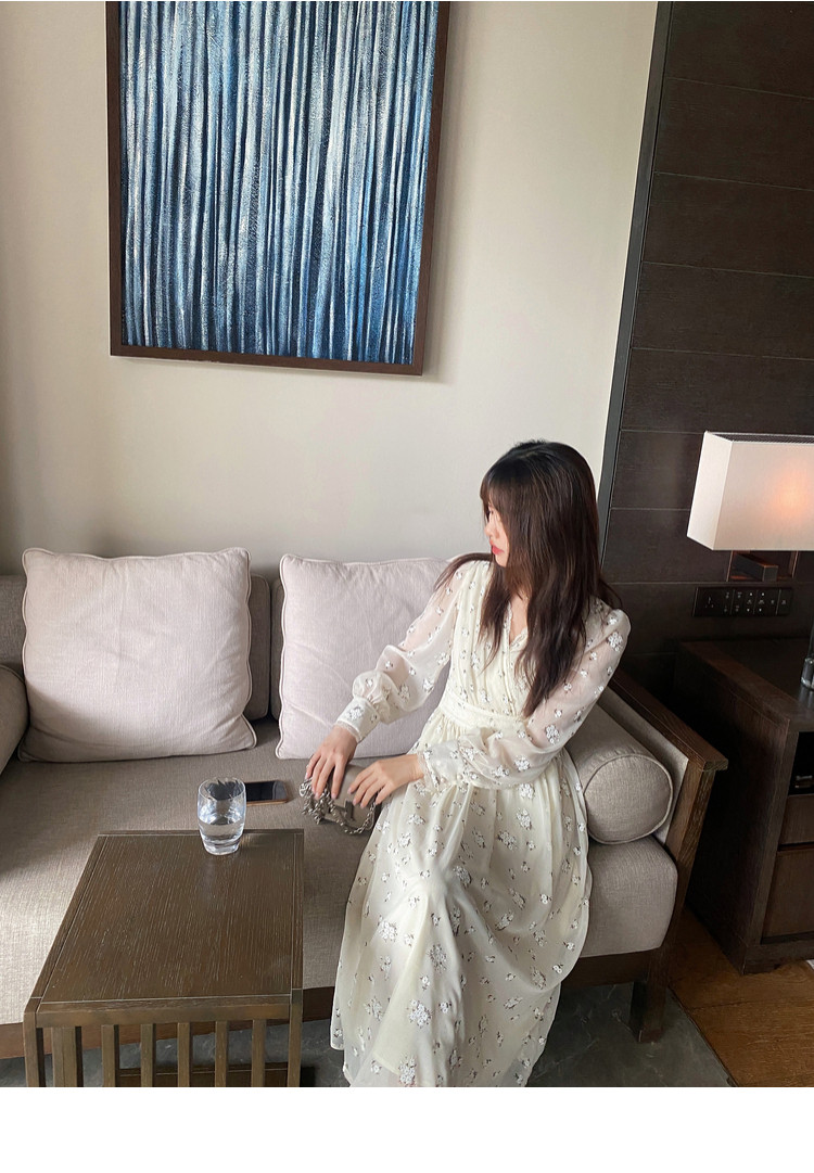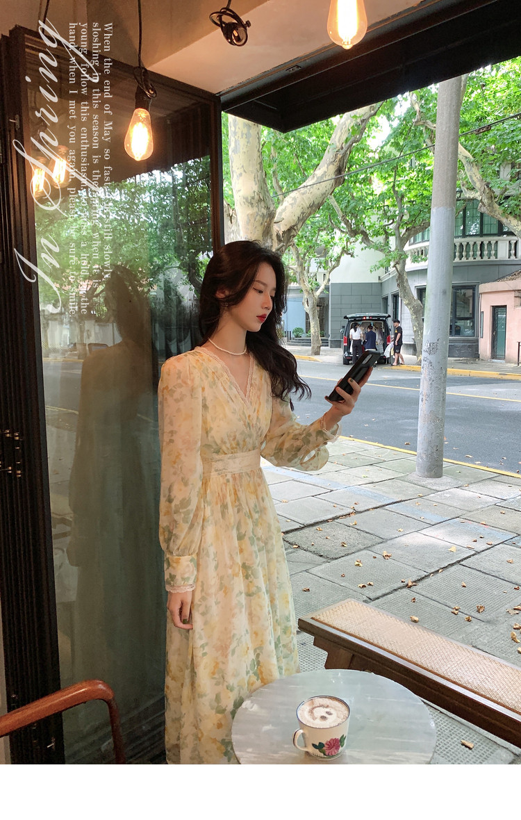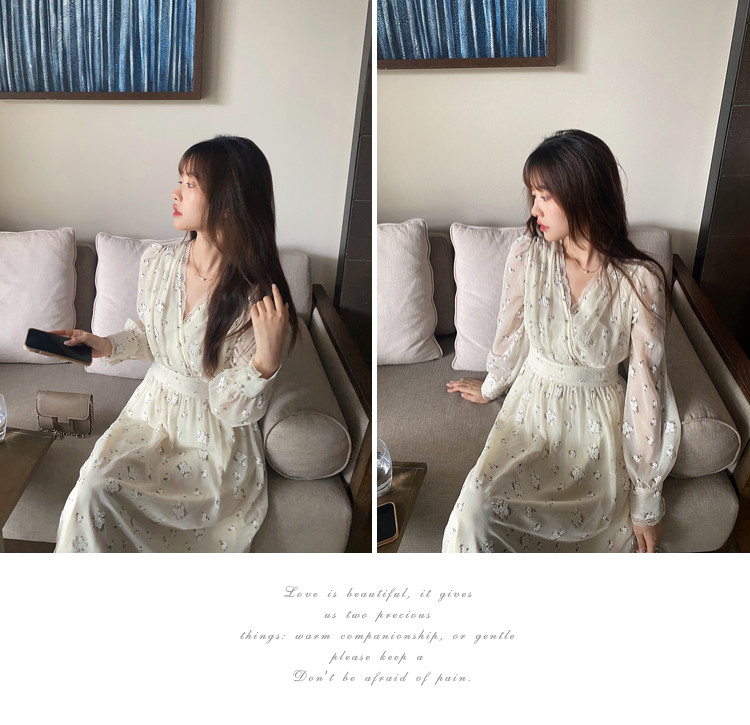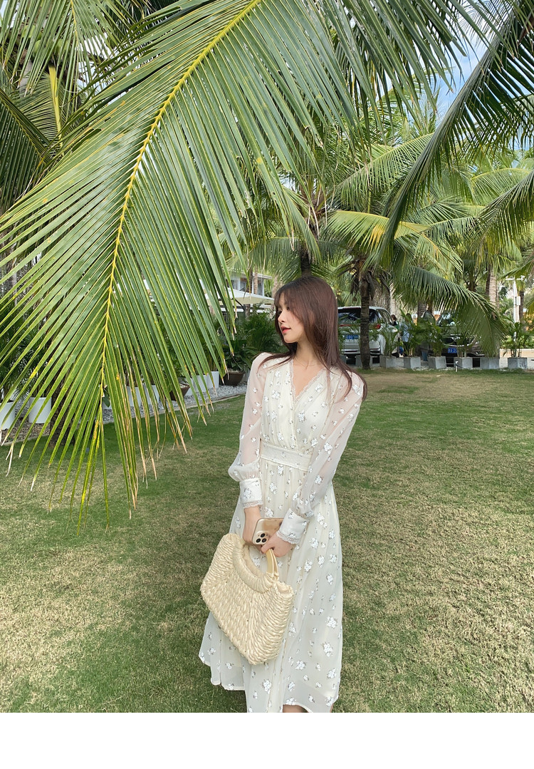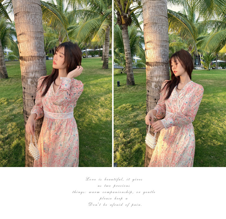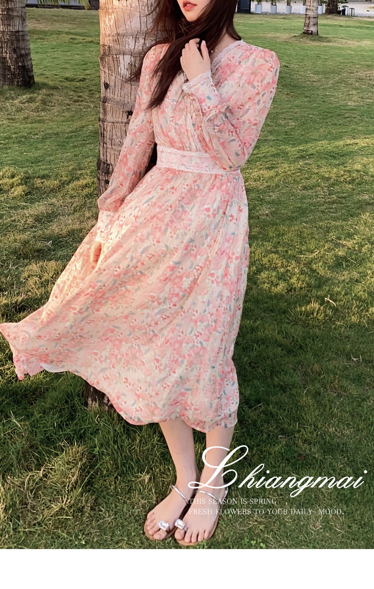 Шелковое кружевное платье, длинная юбка, в цветочек, V-образный вырез