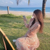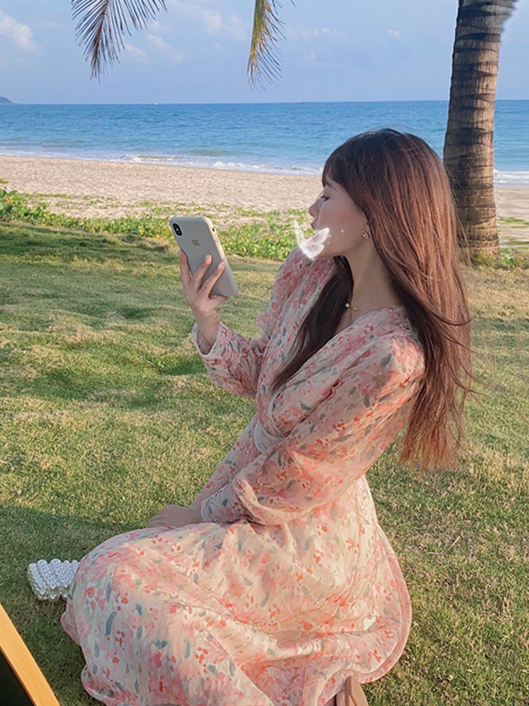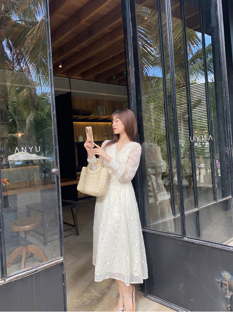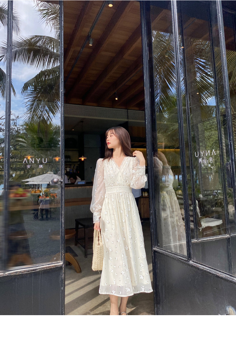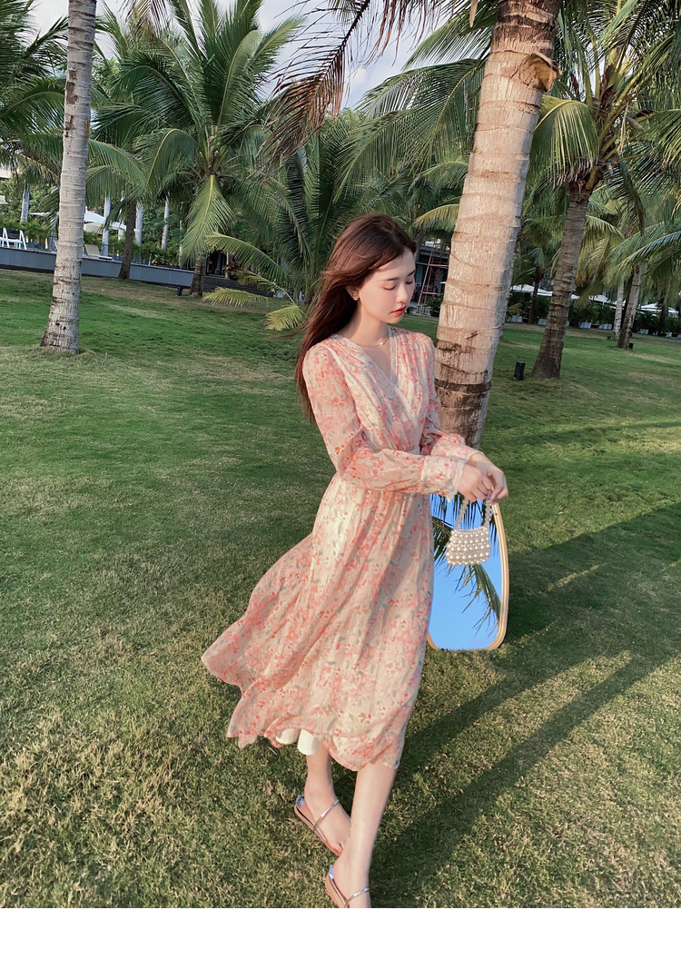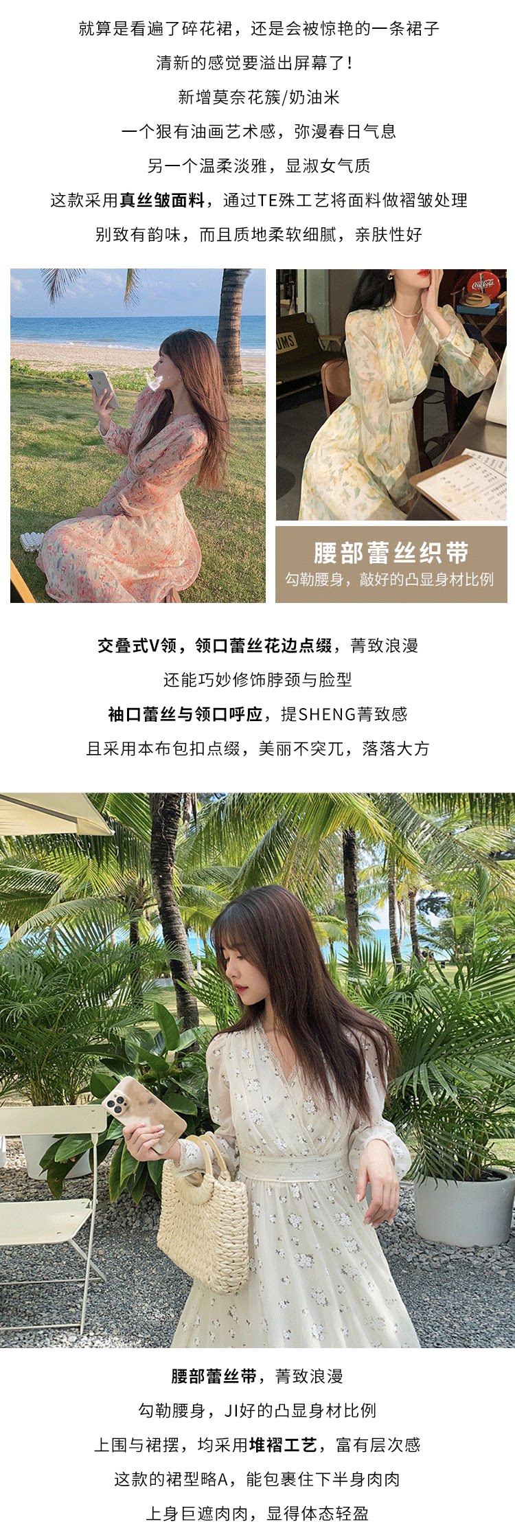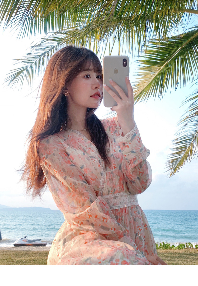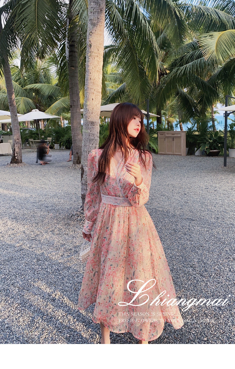 Шелковое кружевное платье, длинная юбка, в цветочек, V-образный вырез