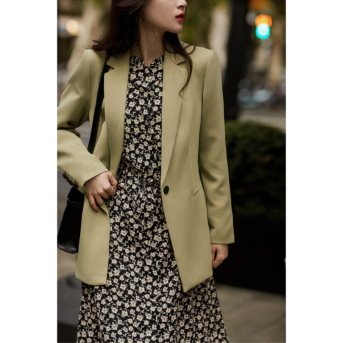 [QZR380592AG] Различные слои павильона Xiaohan могут быть в паре с глубоким v -печатным кружевным платьем в деревянном ухе