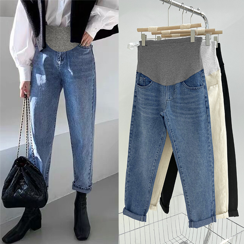 Осенние джинсы для беременных, тонкие весенние штаны с поддержкой живота, большой размер