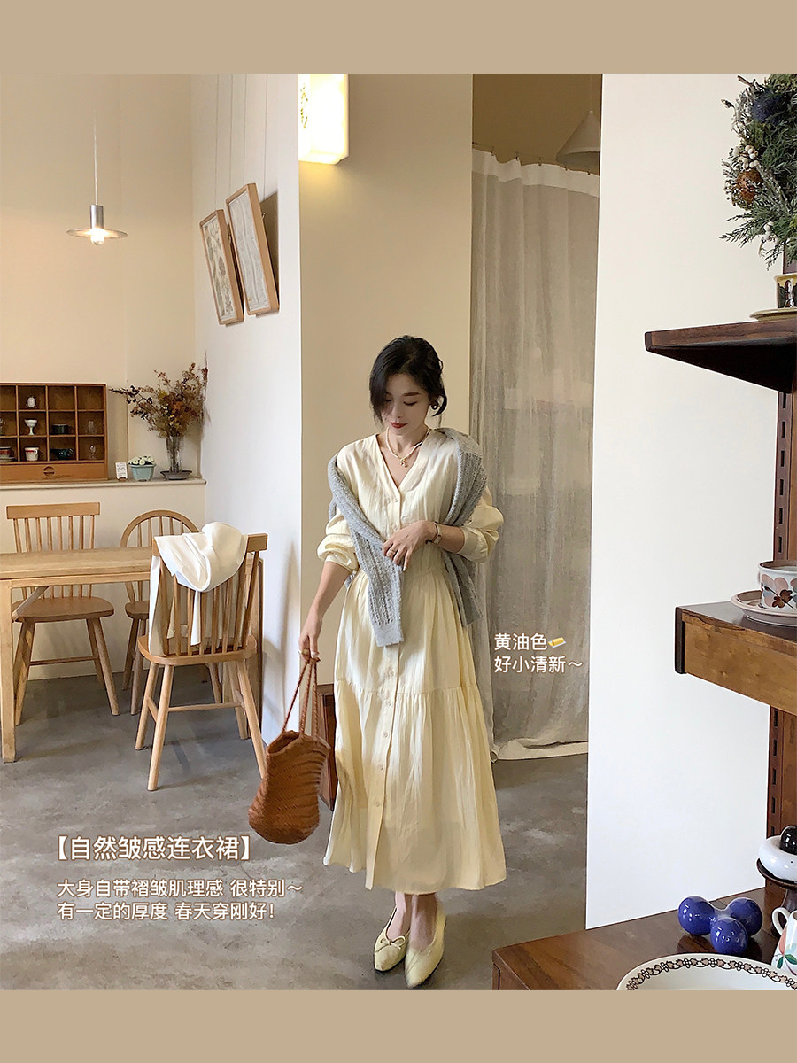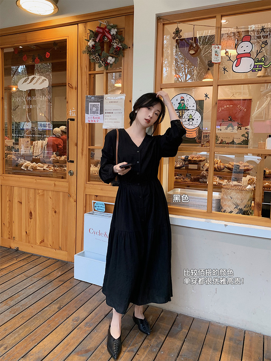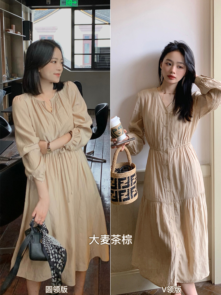 Осеннее платье, приталенный корсет, французский стиль, V-образный вырез
