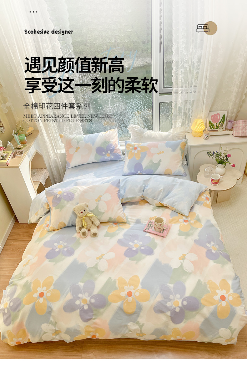 Брендовый хлопковый комплект, пододеяльник для школьников и студентов, простыня, 4 предмета, постельные принадлежности, 3 предмета