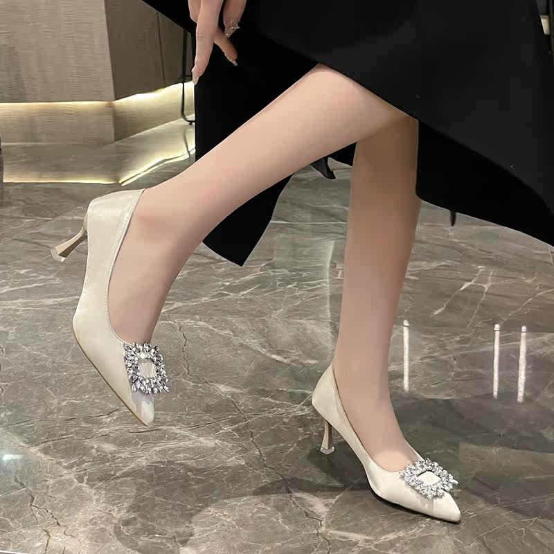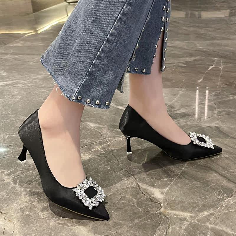 Весенние универсальные модные туфли на высоком каблуке с заостренным носом