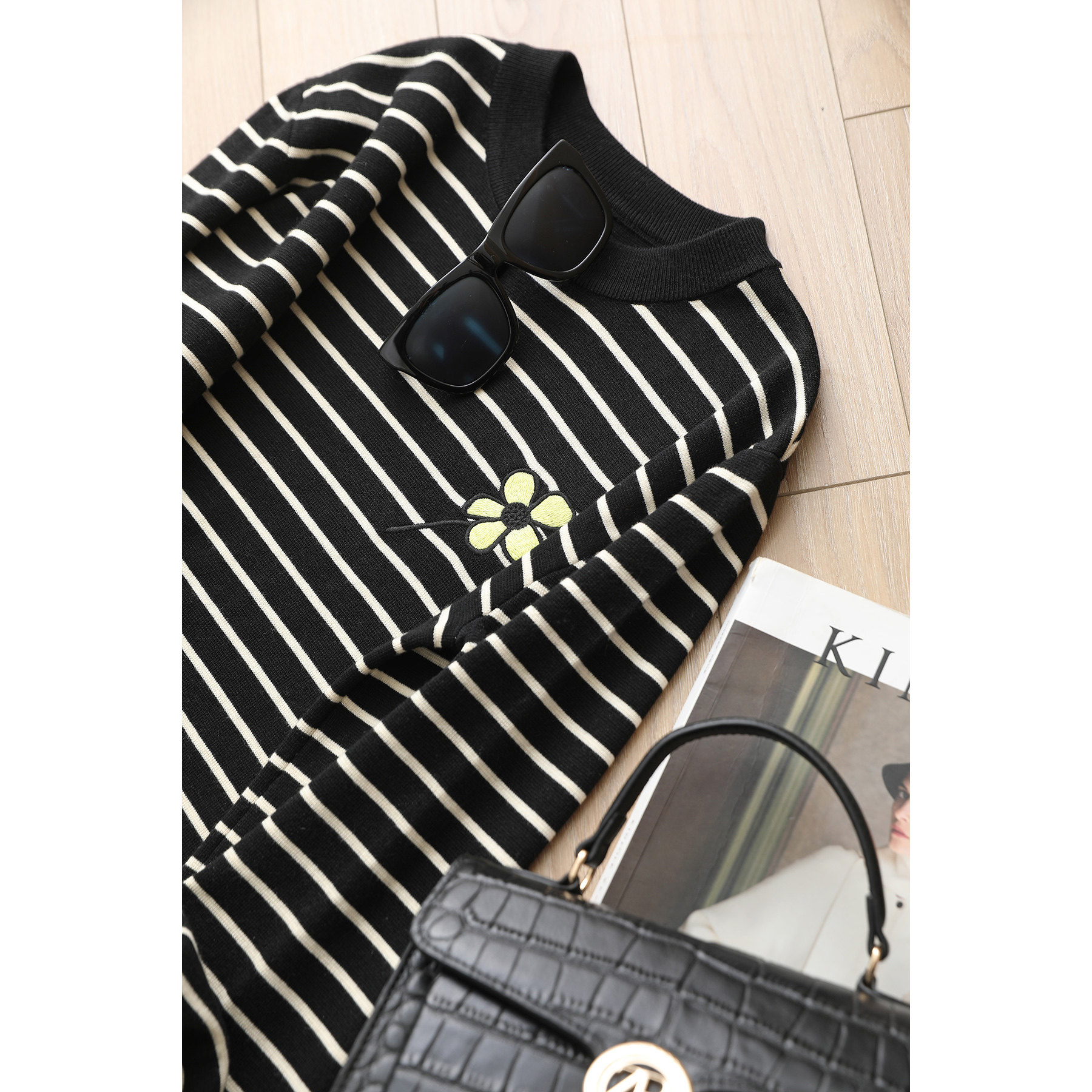 Шерстяная трикотажная футболка, платье, в цветочек, с вышивкой, подходит для подростков