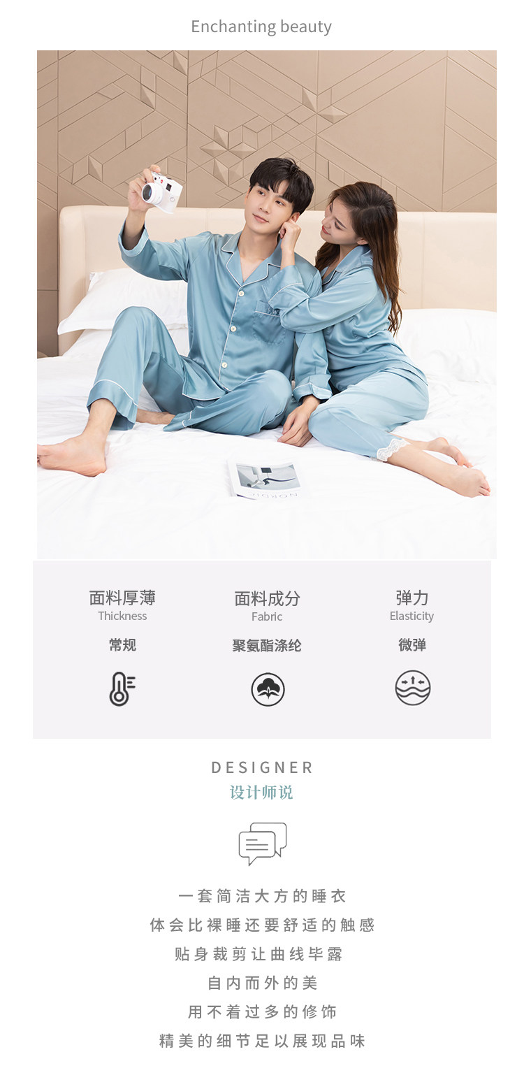 Весенняя пижама для влюбленных, летний шелковый лонгслив, нарукавники, комфортный комплект, коллекция 2022, простой и элегантный дизайн