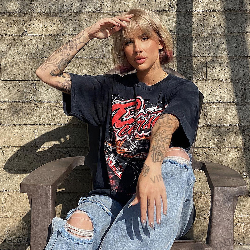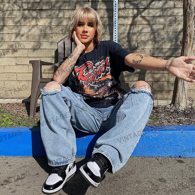 Tide, ретро черная летняя футболка с коротким рукавом, в американском стиле