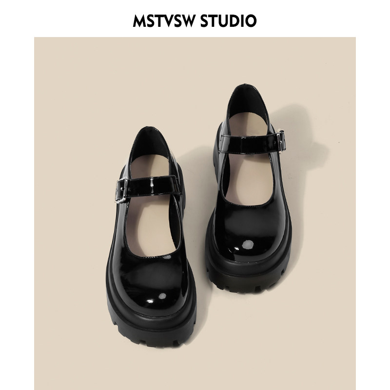 ◆ Очистка специальной цены ◆ Черные ретро-туфли с толстым носком