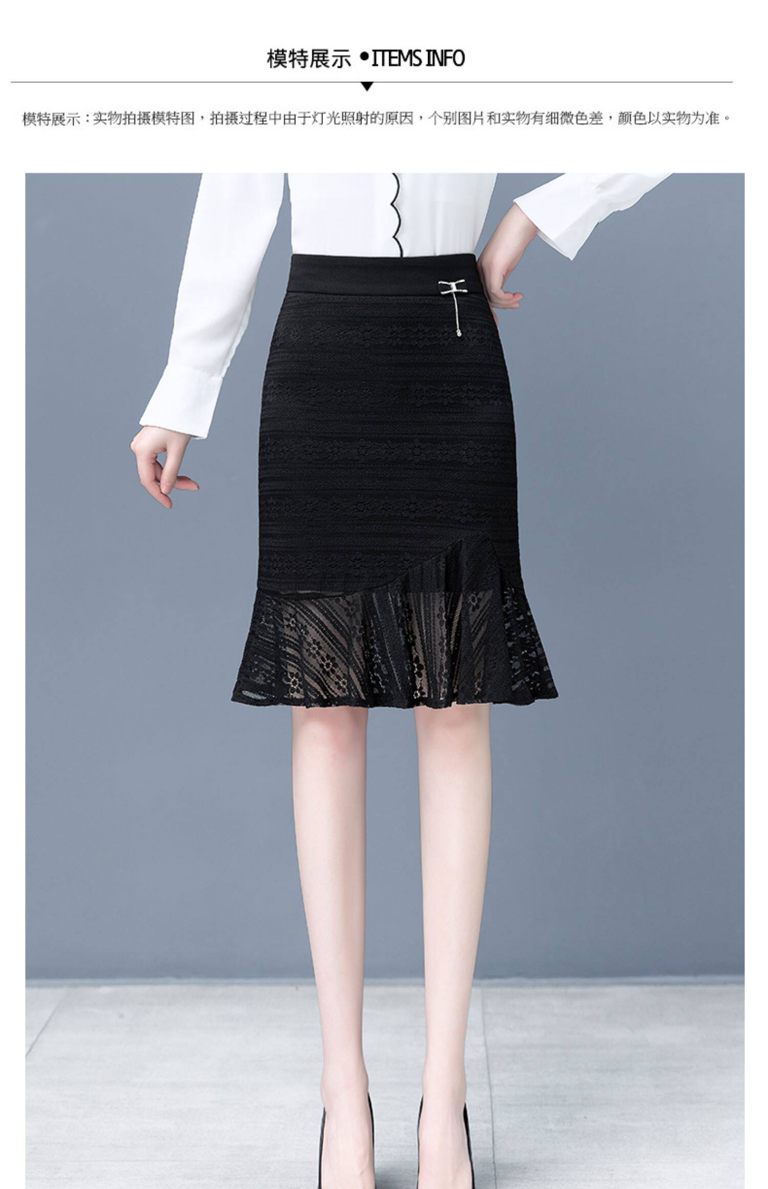 Кружевная весенняя юбка, осенняя приталенная мини-юбка, коллекция 2022, средней длины, крой «рыбий хвост», с акцентом на бедрах