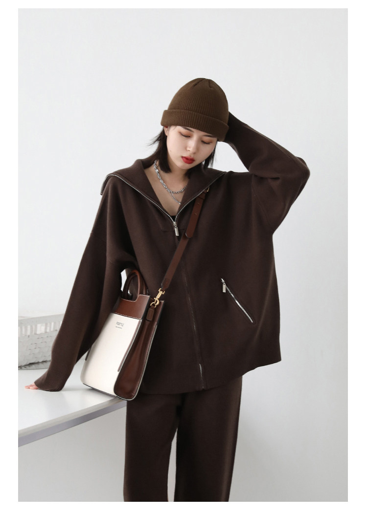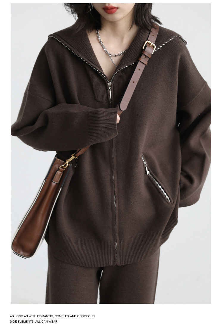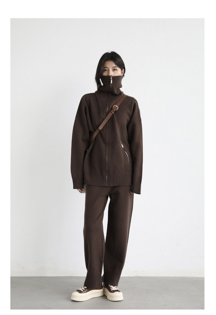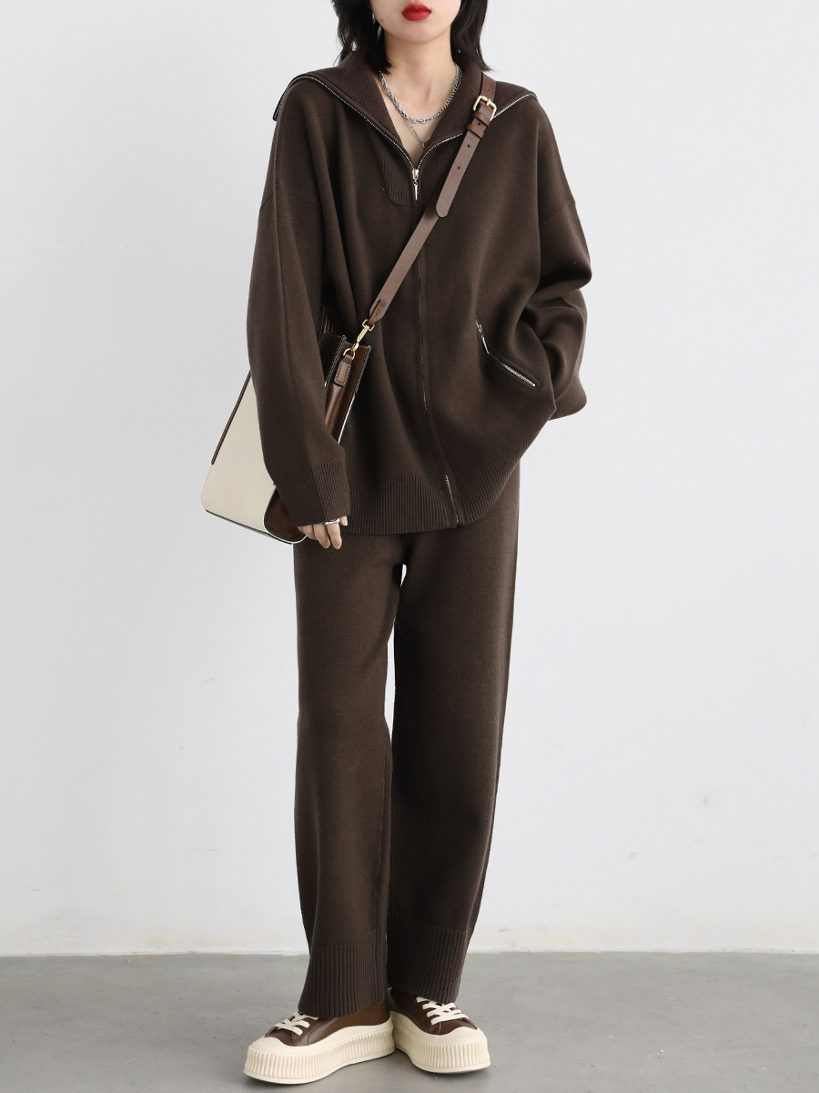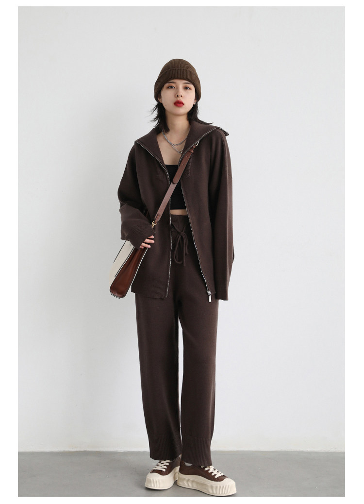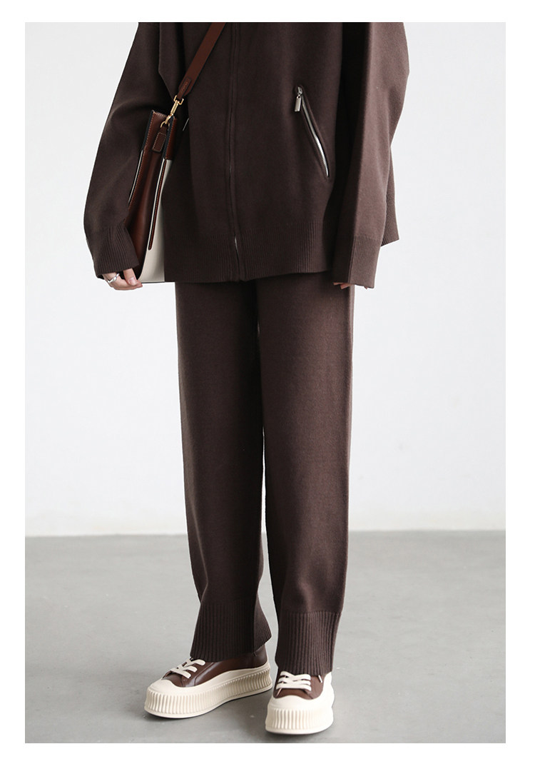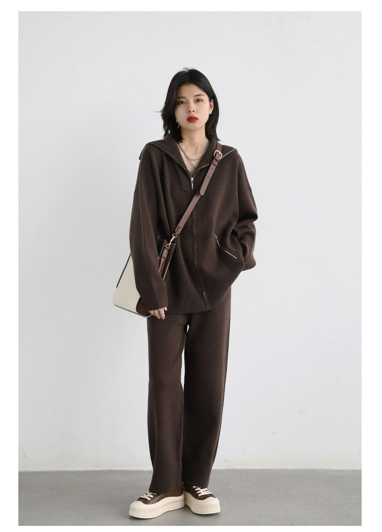 Эмоциональный трикотажный комплект, свитер, куртка, штаны, свободный прямой крой