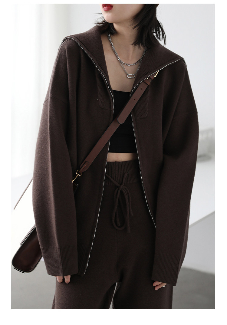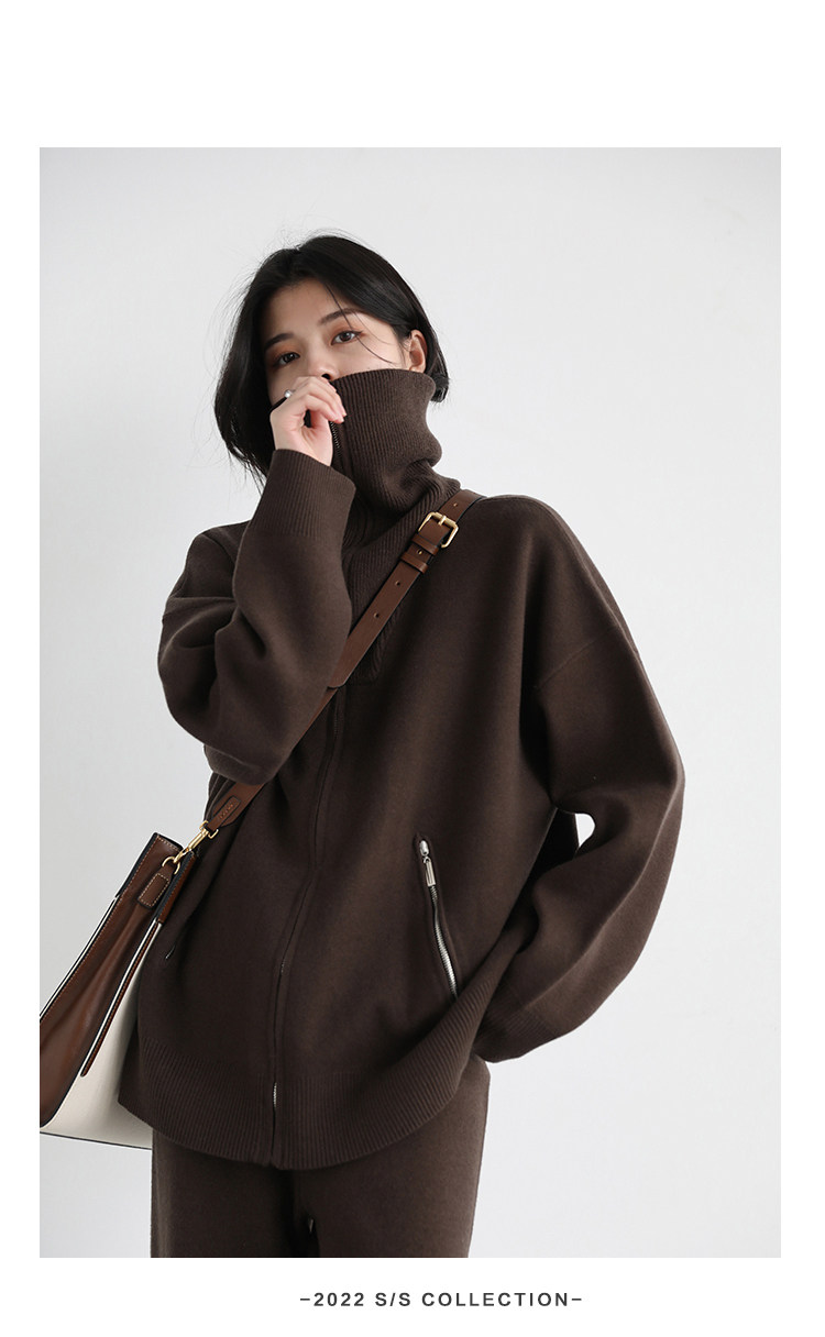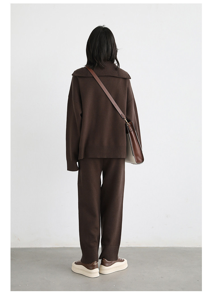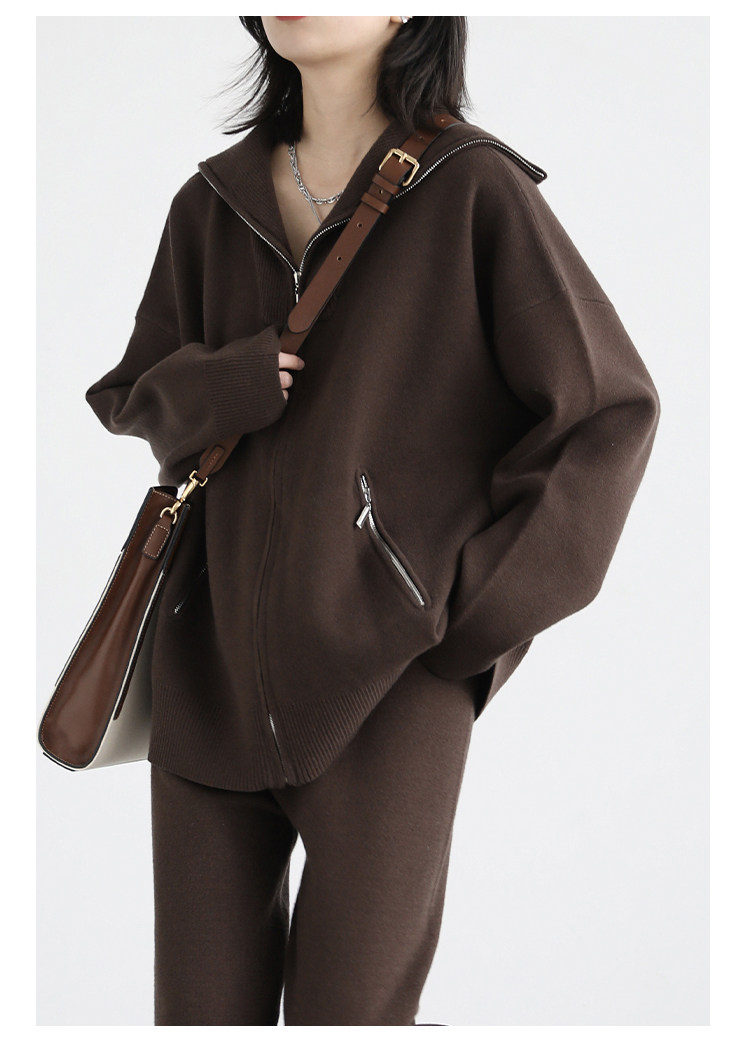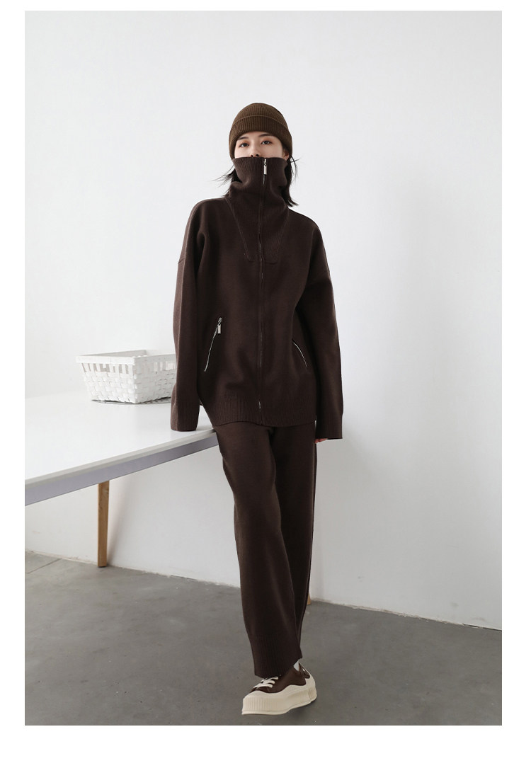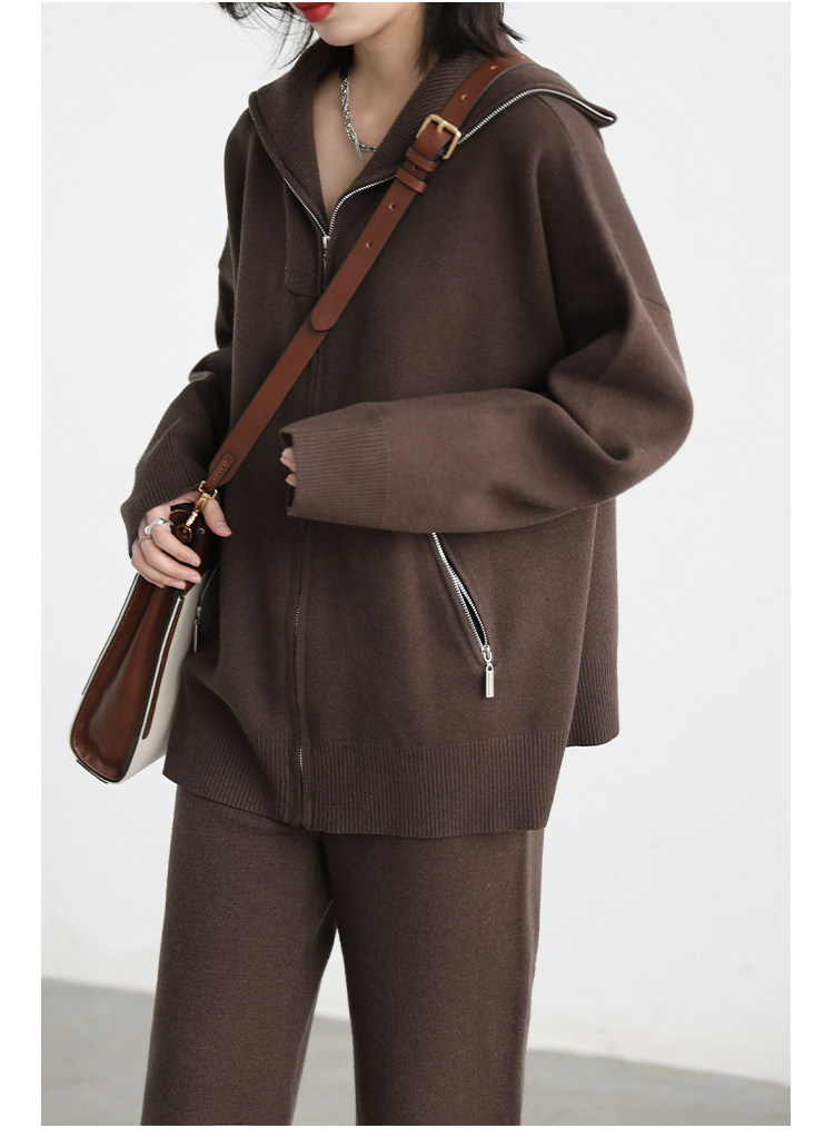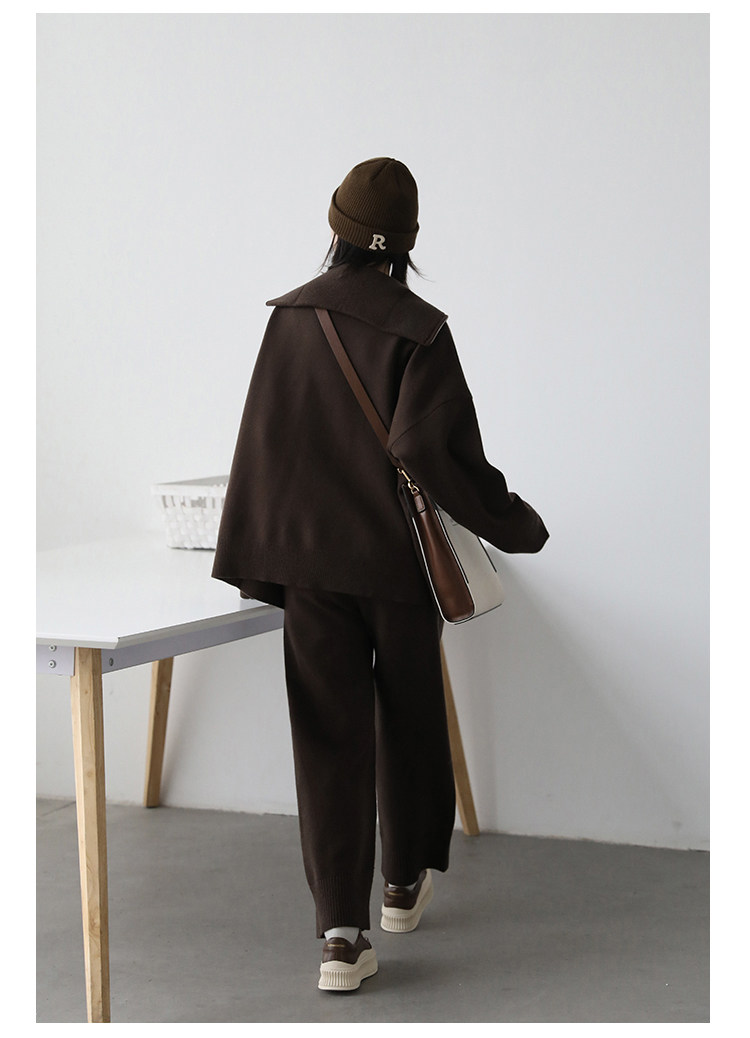 Эмоциональный трикотажный комплект, свитер, куртка, штаны, свободный прямой крой
