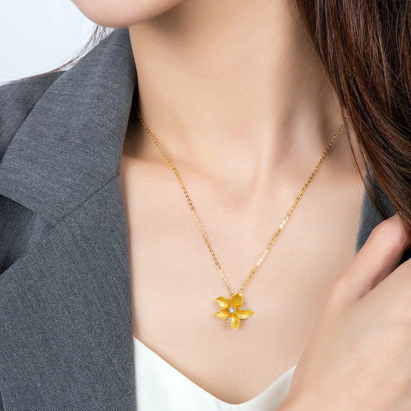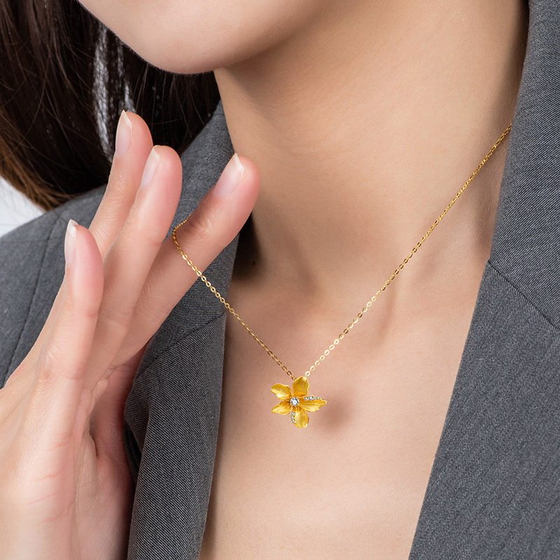 Acer, цветочное ювелирное украшение, бриллиантовая подвеска, цепочка до ключиц, золото 18 карат
