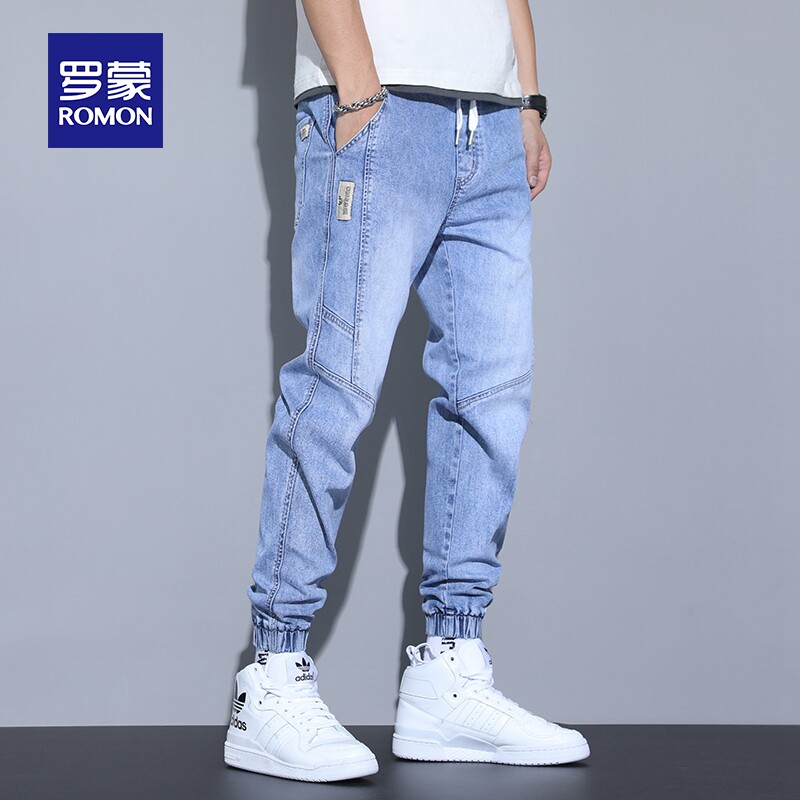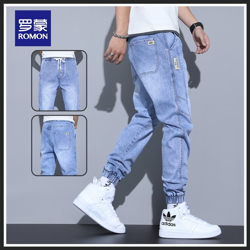 Летние тонкие джинсы, синие эластичные штаны, оверсайз, свободный крой