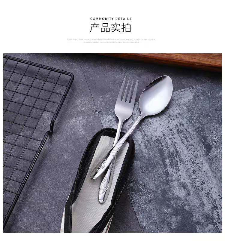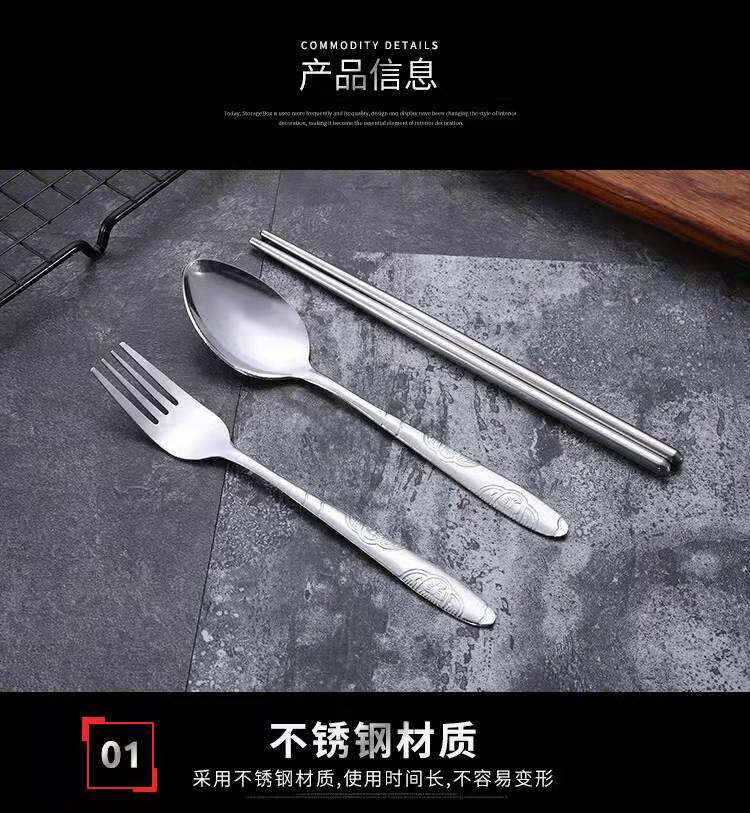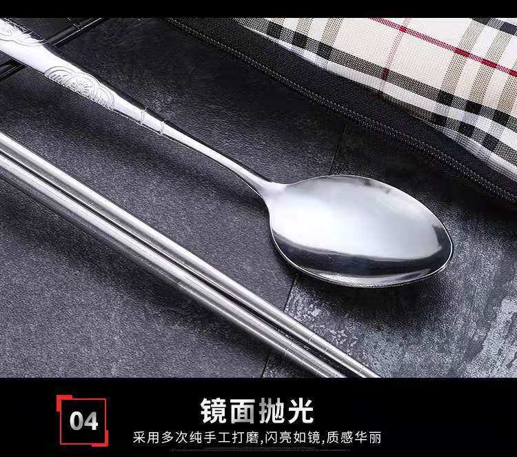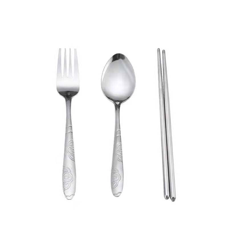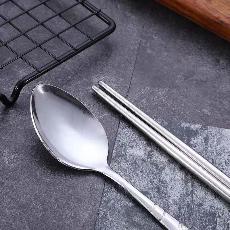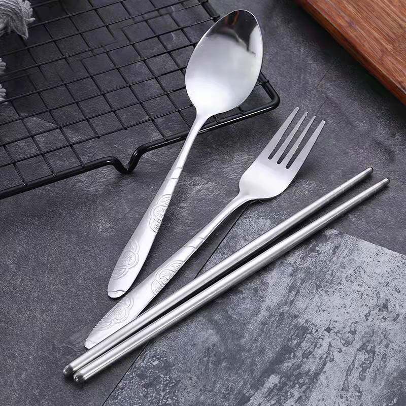 Портативная посуда из нержавеющей стали, комплект, тканевый мешок для школьников и студентов, палочки для еды, ложка, сумка для хранения, 3 предмета