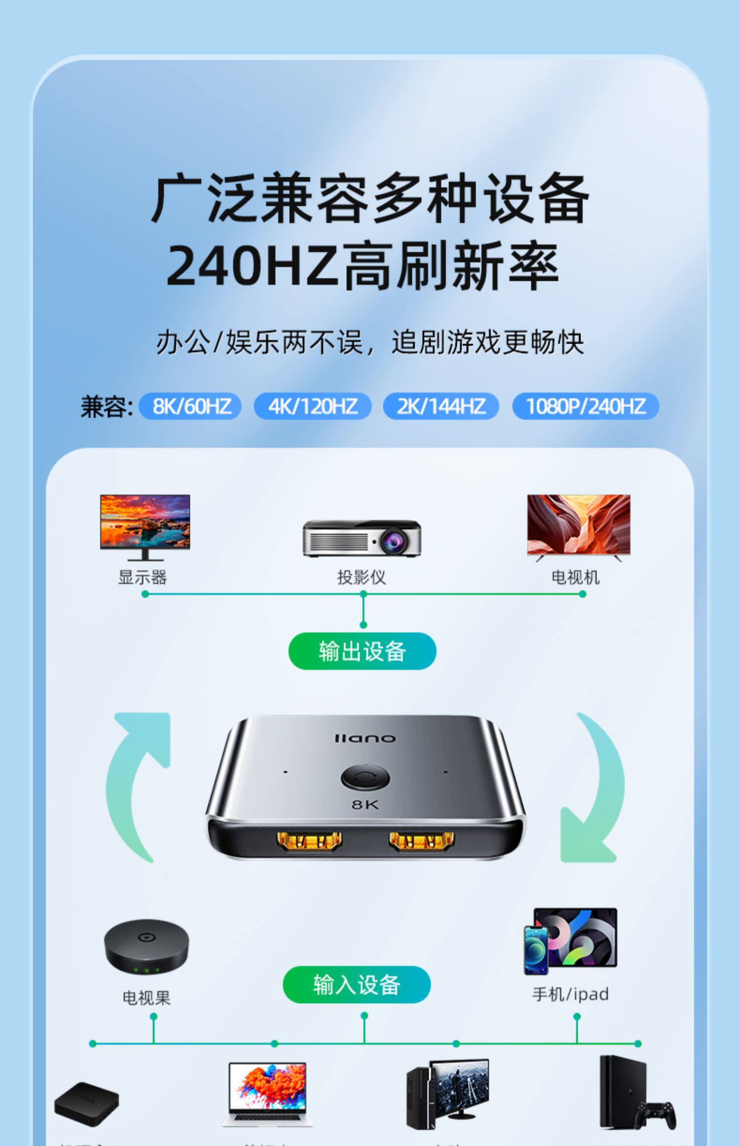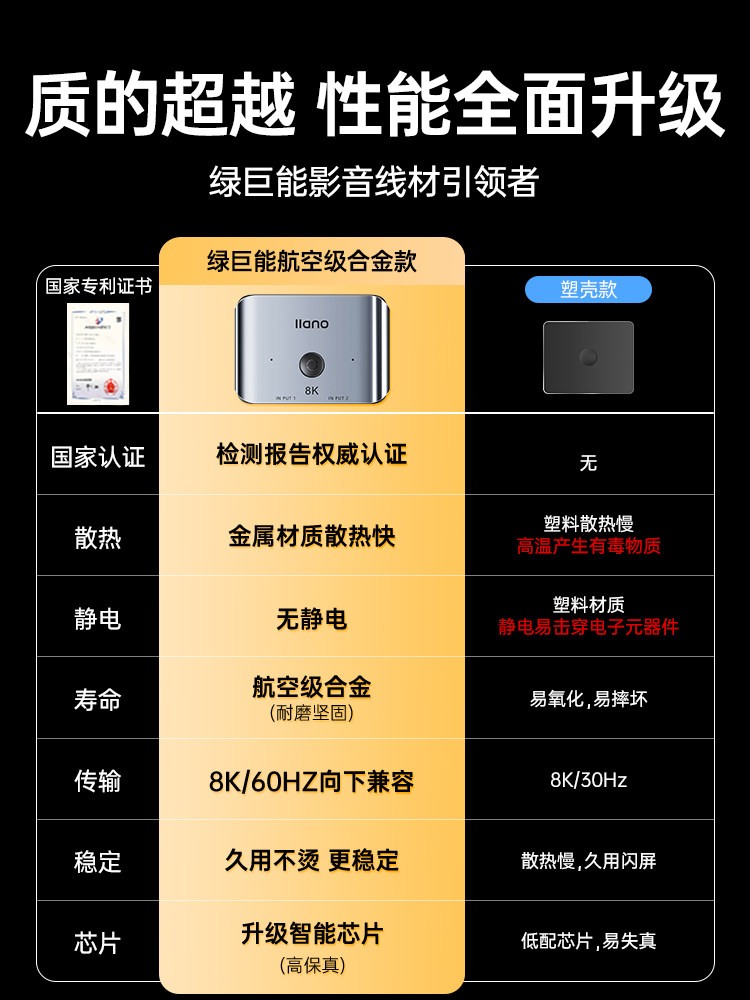 - HDMI2.1 [Erxin и One Out] Переключатель 8K Ultra -Clear [1 цинк сплав 8K Line 1]