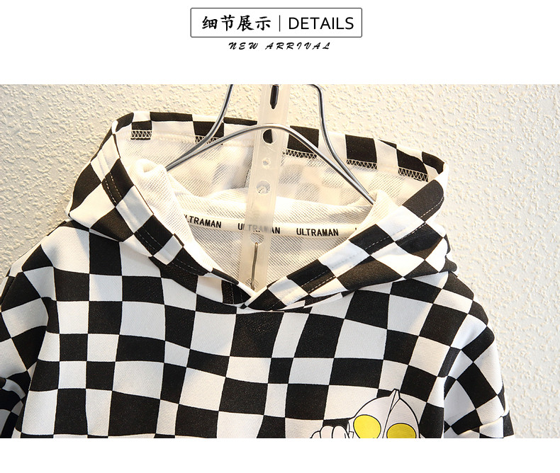 Ultra, толстовка для мальчиков, шахматы, спортивная кепка с капюшоном, детский балахон, Ультрамен Тига, популярно в интернете