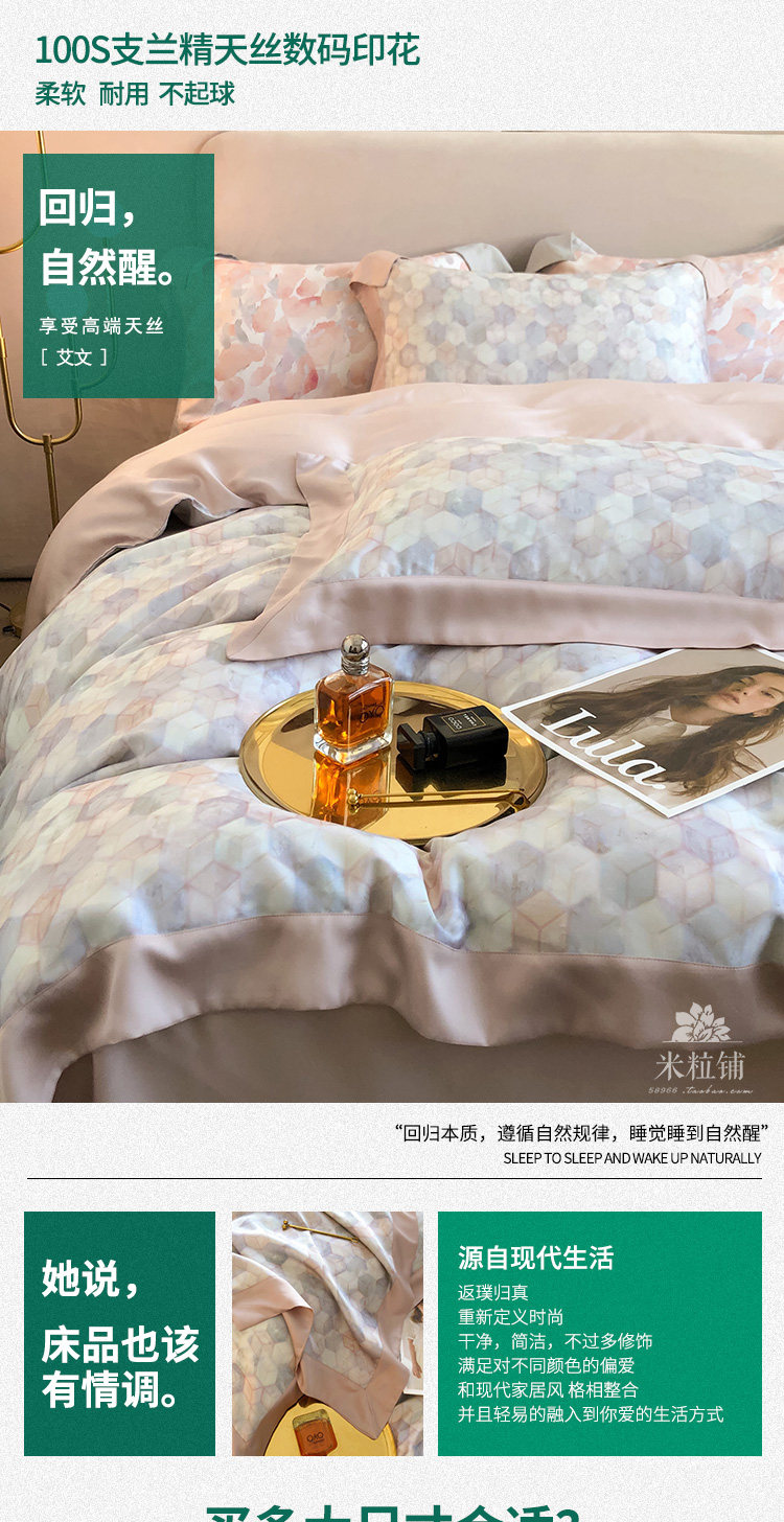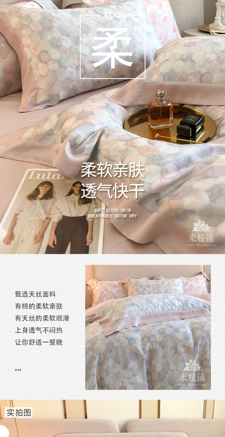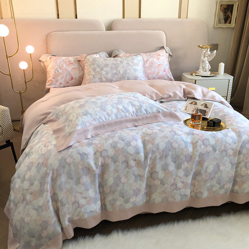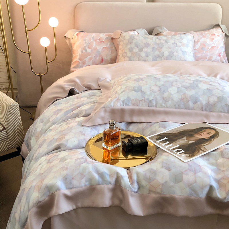 Летний двусторонний комплект, шелковистый пододеяльник, свежее покрывало, легкий роскошный стиль, 100 шт, 4 предмета