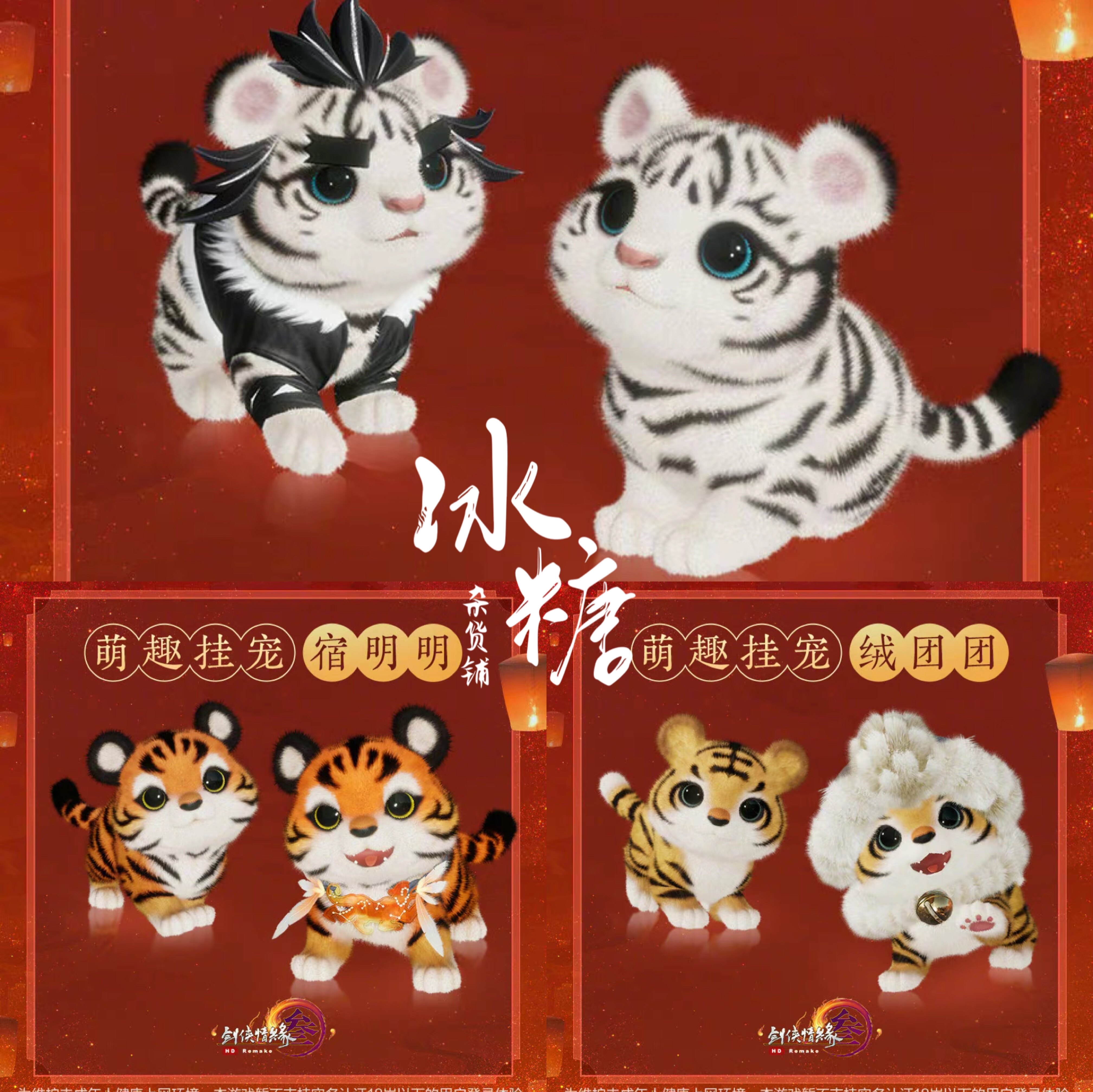 Цзянь Ван 3 Меча Три Висящих Домашних Животных Тигра Милый Тигренок Пушистый Туан Туан Мяу У Ву Су Минмин Белый Тигренок