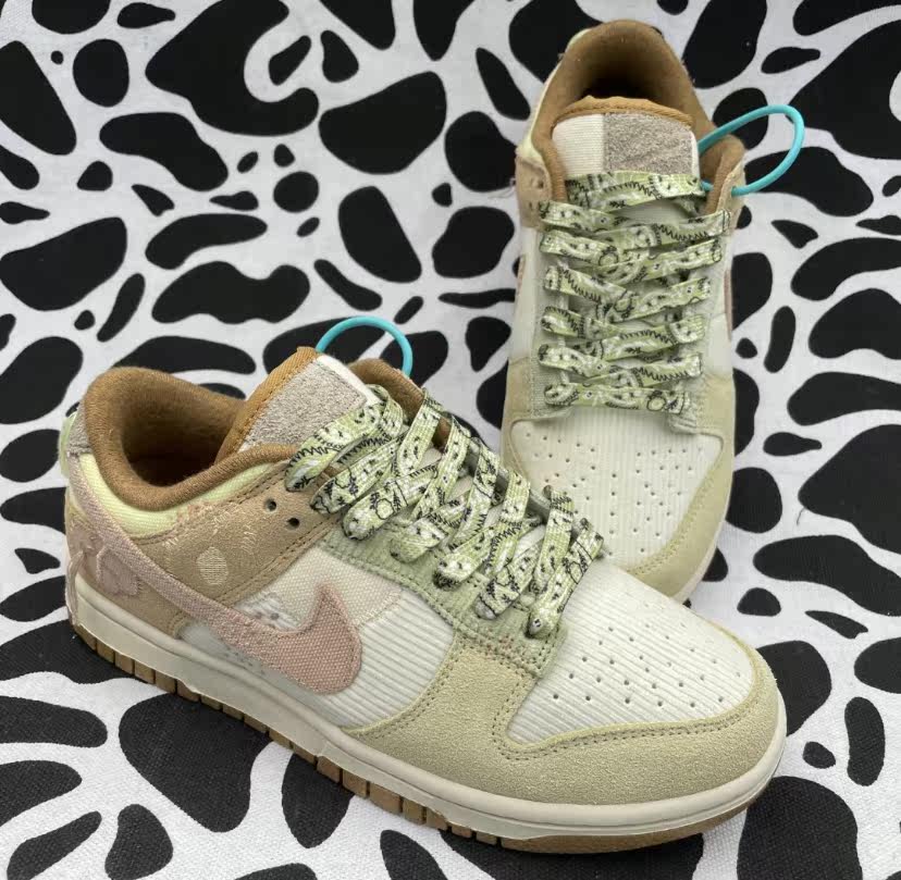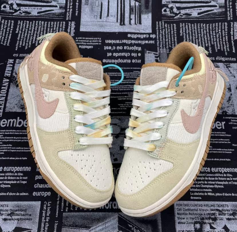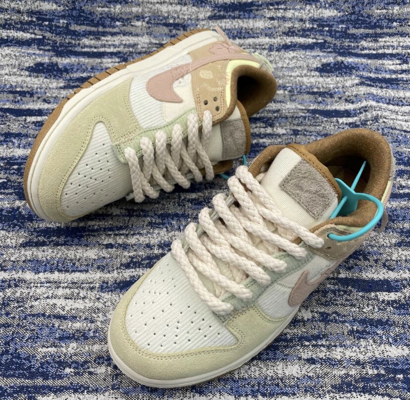 Адаптированная данка с низким белым розовым ядром вниз с бежевой толстой конопляной шнуровкой