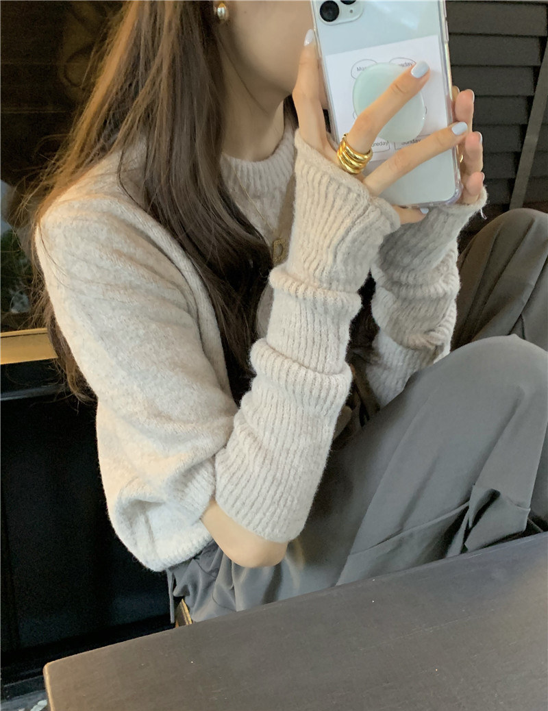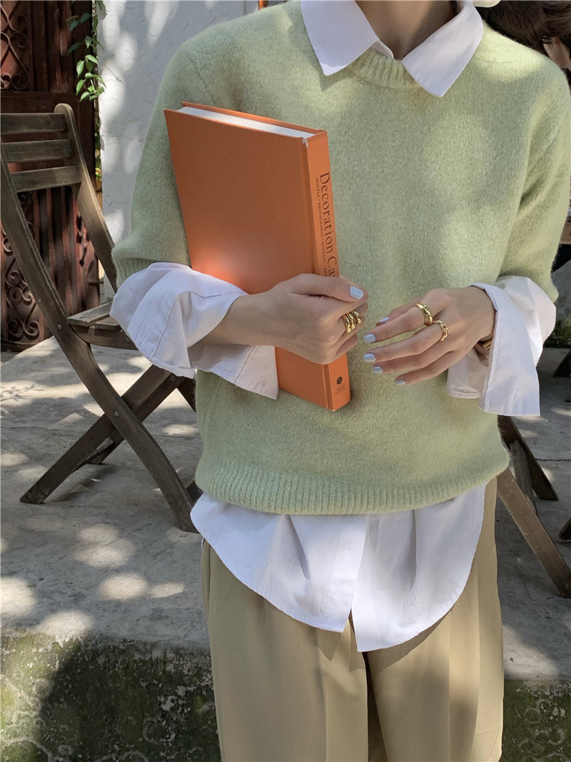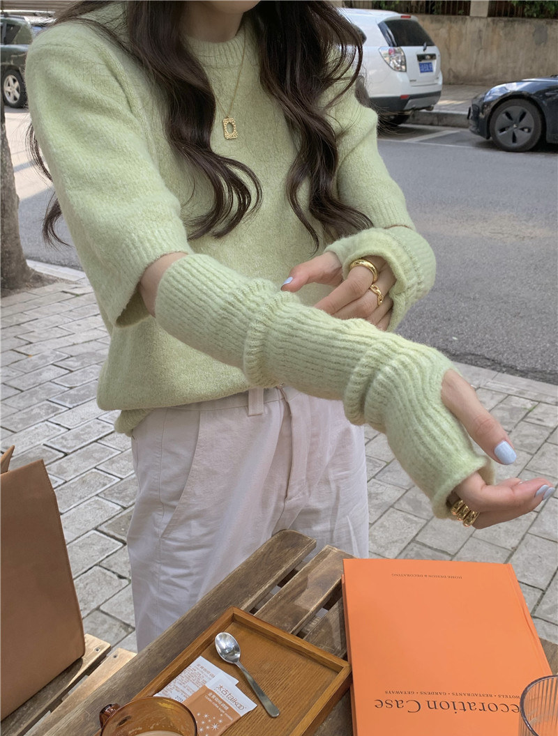 Осенний сексуальный съемный короткий зеленый трикотажный свитер, оверсайз