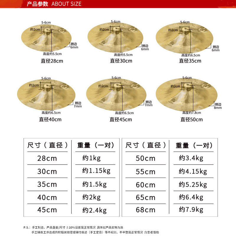 Медные ударные инструменты, диаметр 28-45мм, 28-45см, лев