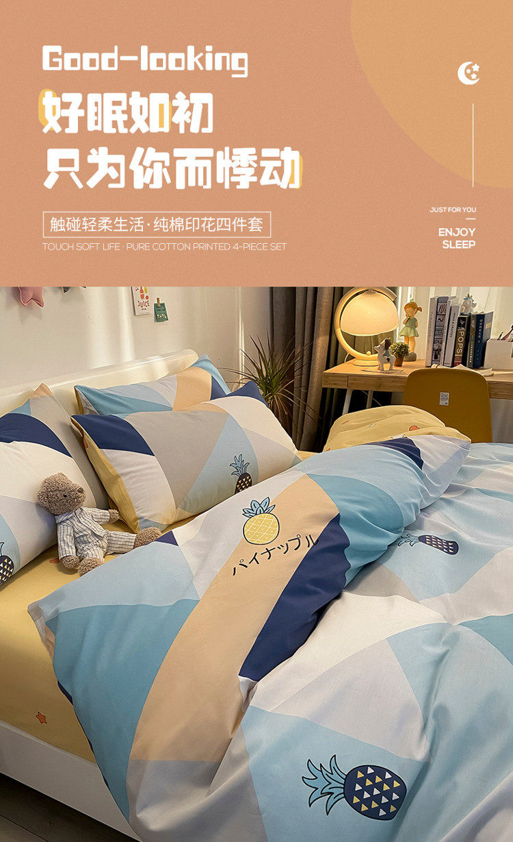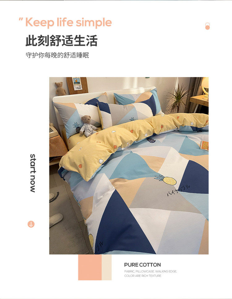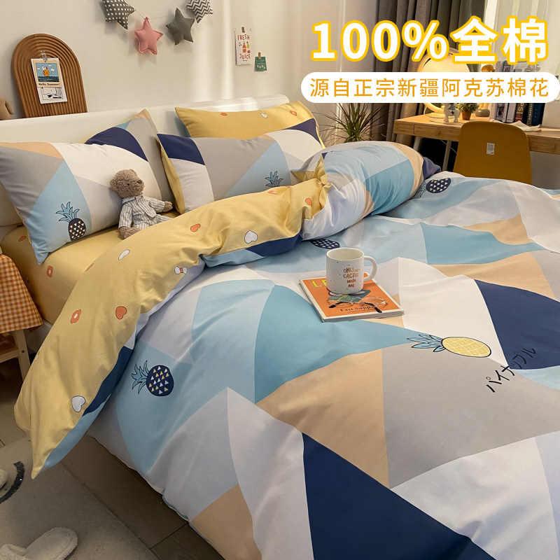 Хлопковый зимний комплект, простыня, пододеяльник, увеличенная толщина, 4 предмета, постельные принадлежности, простой и элегантный дизайн